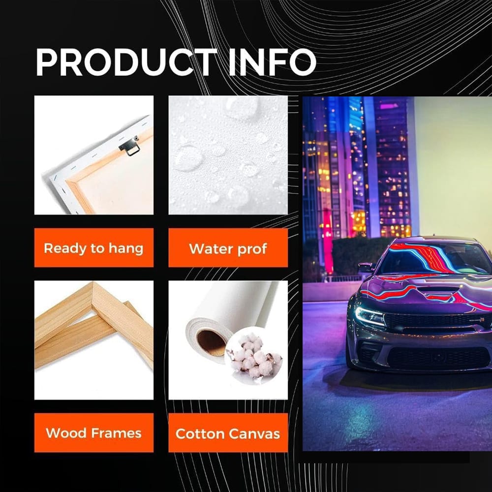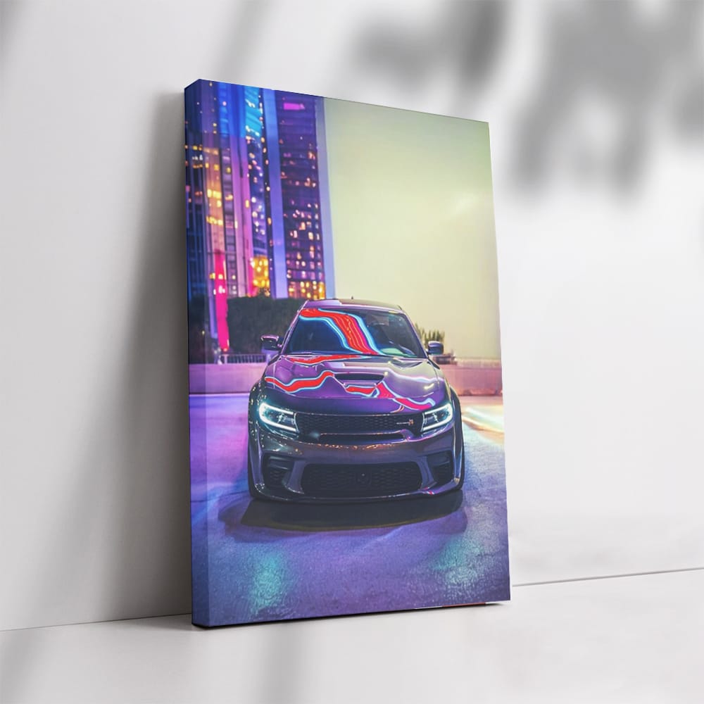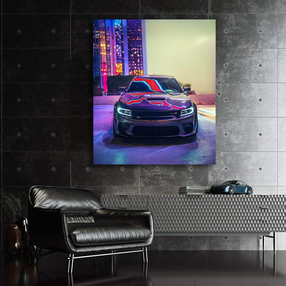 Bro, this Dodge Charger poster is pure power on the wall! Night, lights, and this beast on the road. A painting that will get your adrenaline pumping. This is wall art for true speed and drift lovers. Hang it up and your abode will be cooler than a pit stop! See more from the collection: Dodge Art
