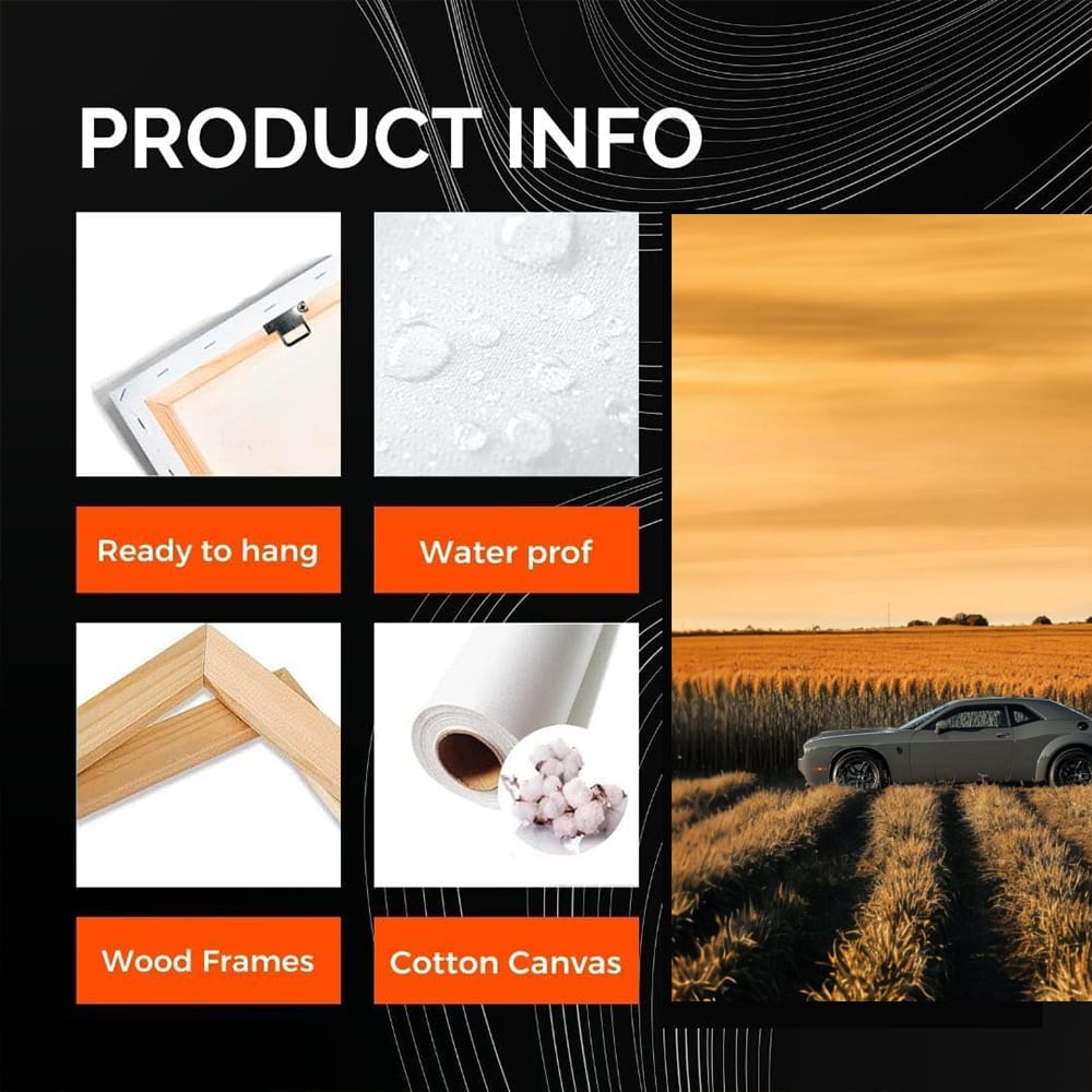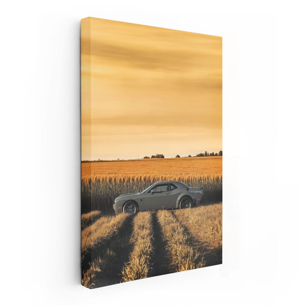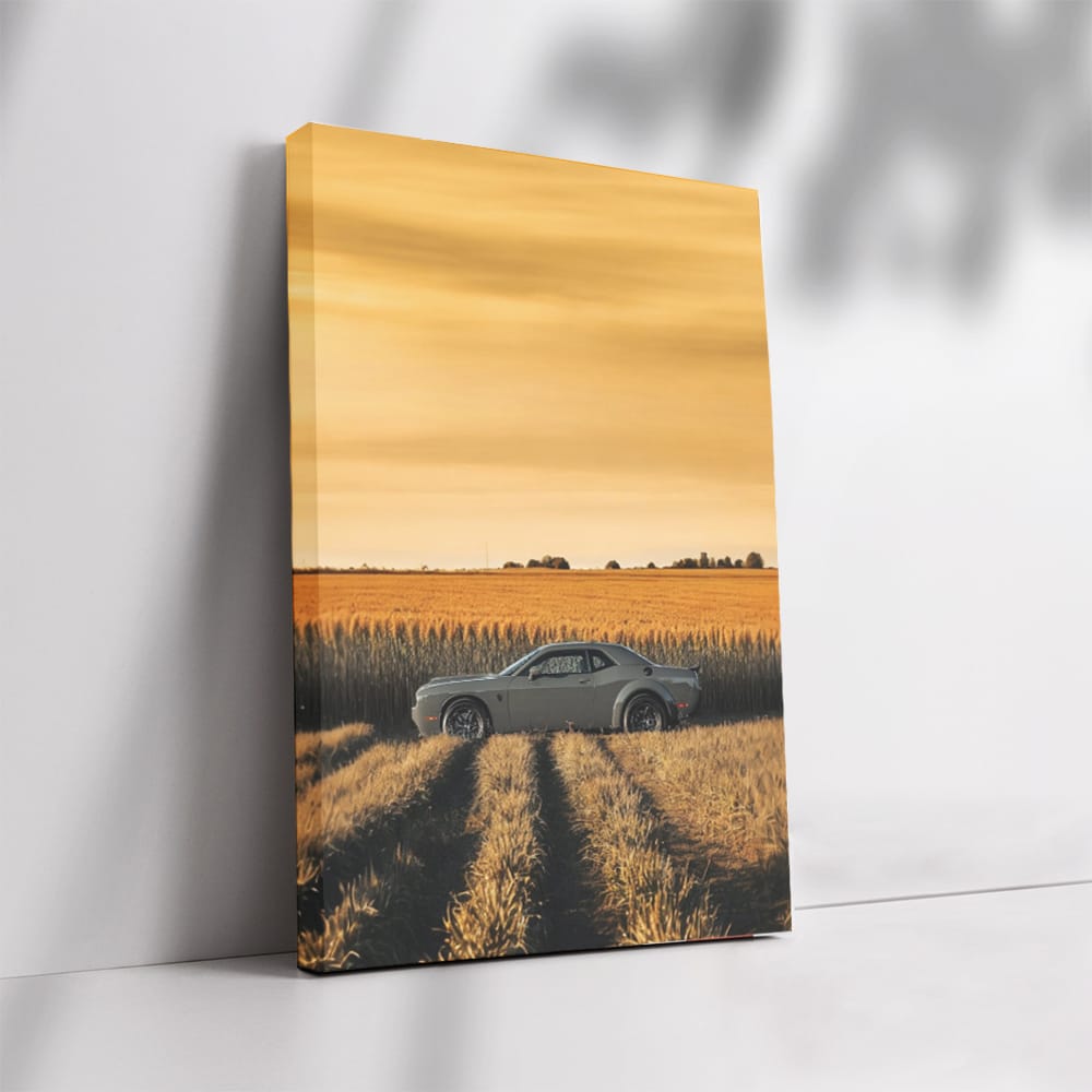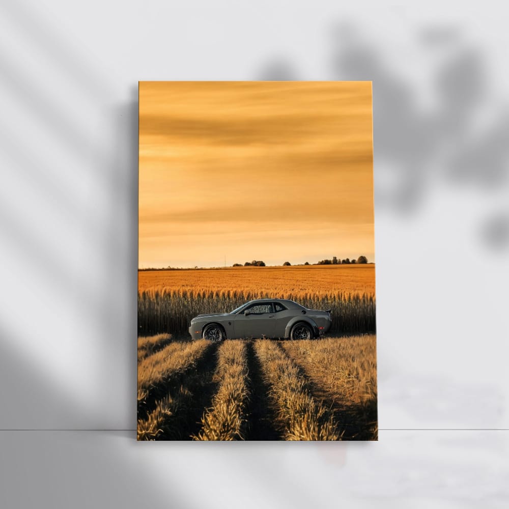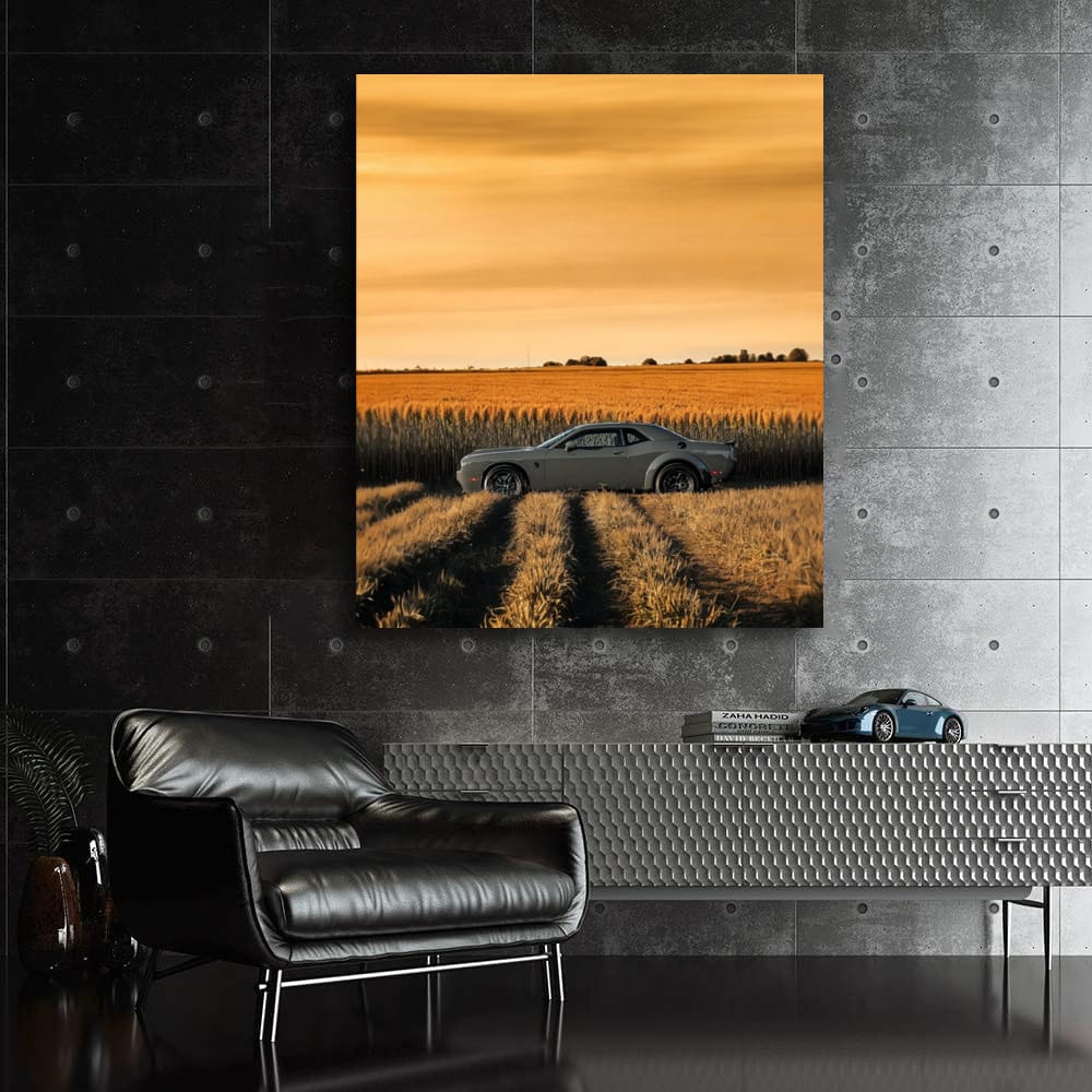 This poster is like a cool car in the garage. "Dodge in the field" is a wall art that will pump up your wall. Powerful and bold, it conveys the essence of speed and freedom. A painting for those who appreciate drive and adrenaline. See more from the collection: Dodge Art