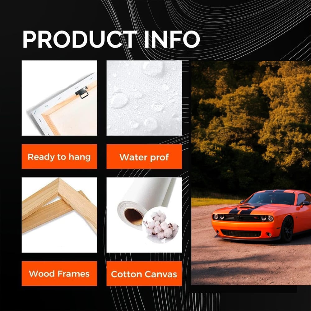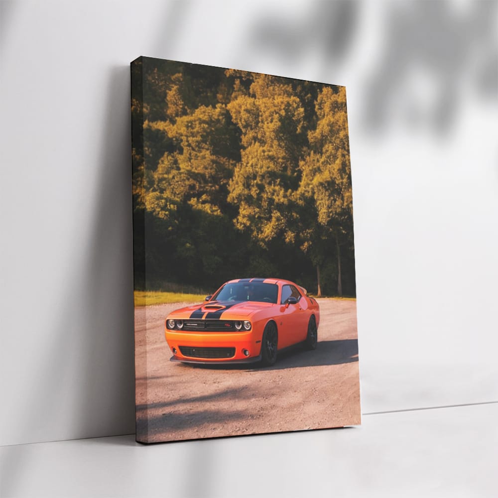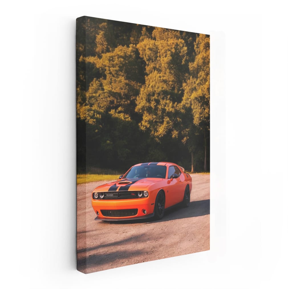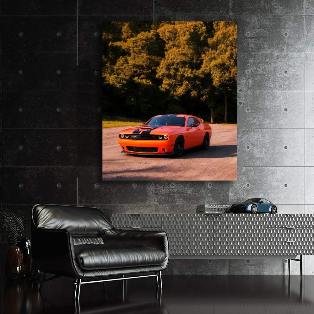 Guys, this painting is a blast! "Dodge in the autumn forest" is something like a poster that you need to have on the wall in your garage. Wall art that excites the blood and inspires new feats. A car in the forest is like freedom at full speed. See more from the collection: Dodge Art