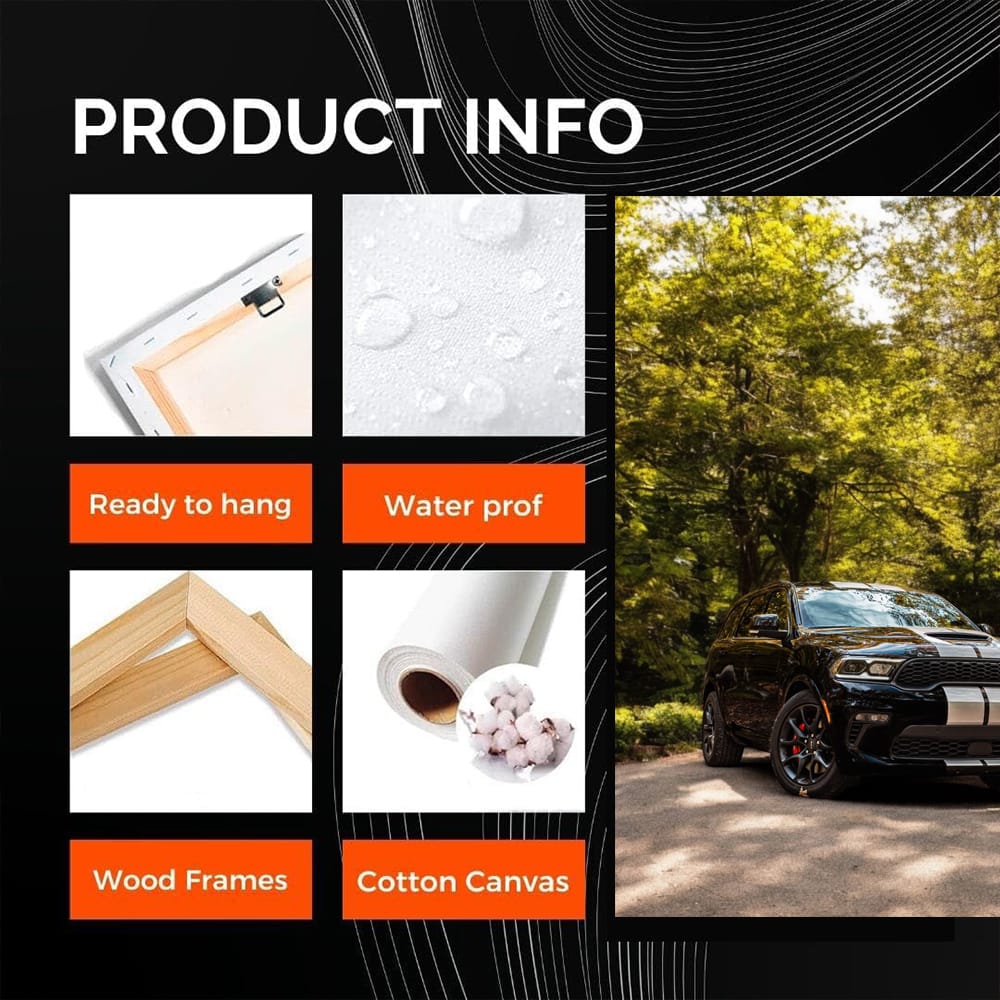 Have you seen this bomb on the wall? This is not just a poster, but a real masterpiece of wall art. The painting with the Dodge car breaks the pattern, like a turbo at maximum speed. A cool design that bursts into your garage like a dragster at the starting line. See more from the collection: Dodge Art