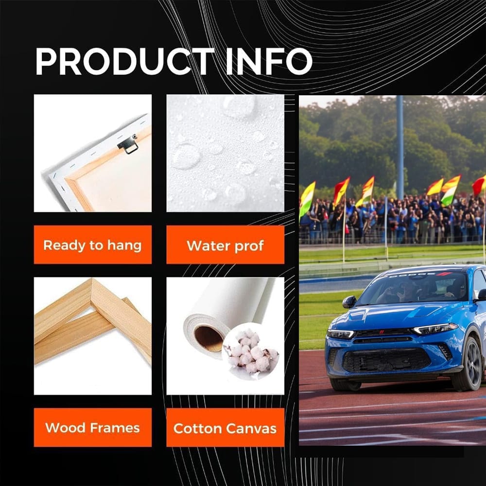Hey bro, check out this poster! Here's our buddy Dodge, who's burning the track like crazy. This isn't just a painting, this is wall art for those who appreciate speed and adrenaline. This piece of metal on canvas is pure power and freedom! See more from the collection: Dodge Art