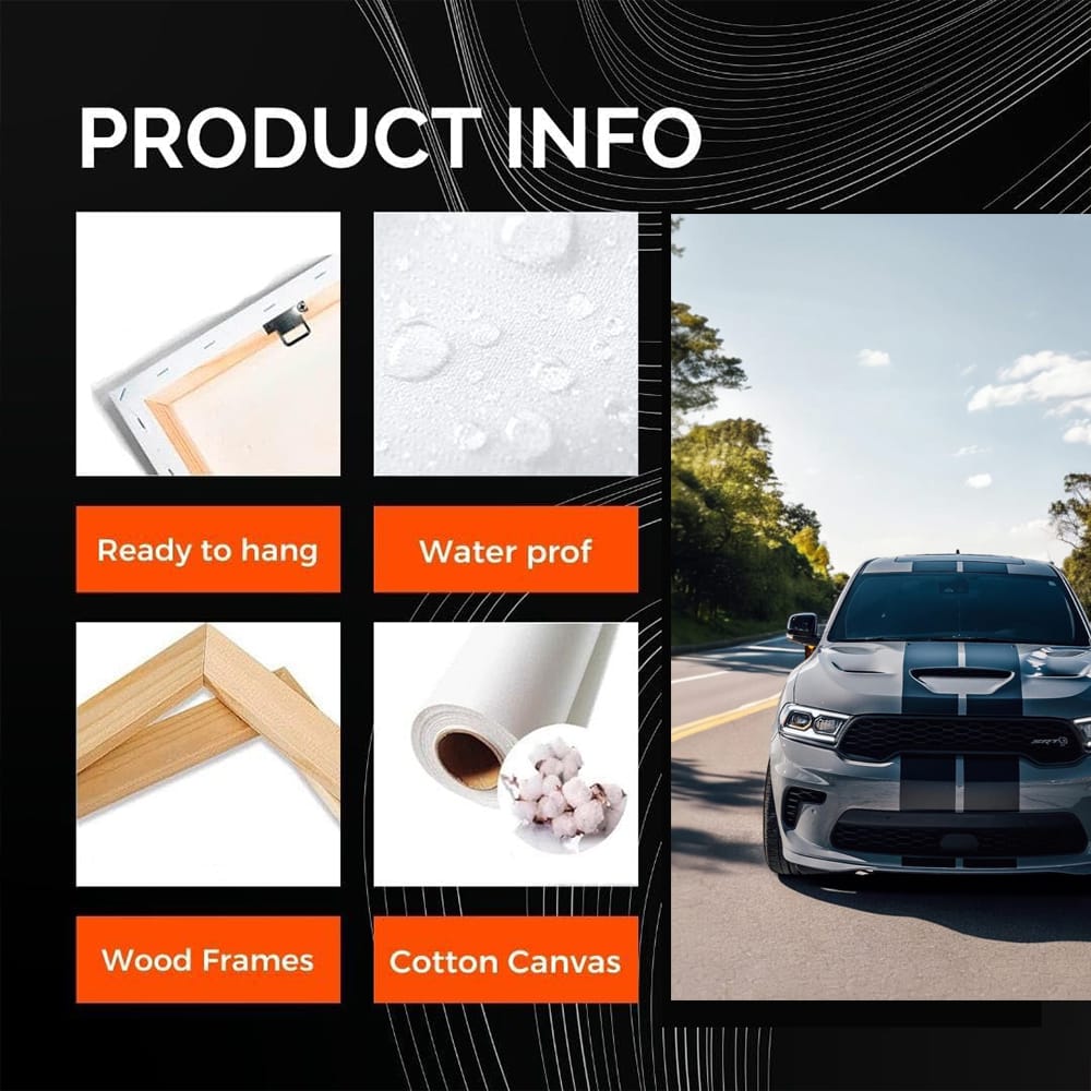 What a car on a poster! You know when a painting speaks for itself? This Dodge on the wall art seems to tear up the asphalt. It whispers: "Start the engine, bro!" You see it - and you want to go right away. This is not just a poster, it is the spirit of speed on the wall. See more from the collection: Dodge Art