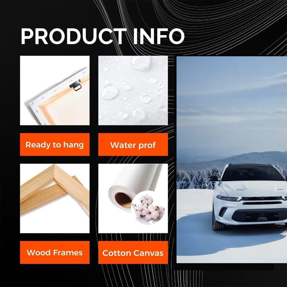 This poster is a real find for car fans! The painting of Dodge covered in snow seems to say: "Even in the cold I'm ready for battle." Wall art for those who breathe speed and are not afraid of skidding. This is not just a painting, but a challenge! See more from the collection: Dodge Art