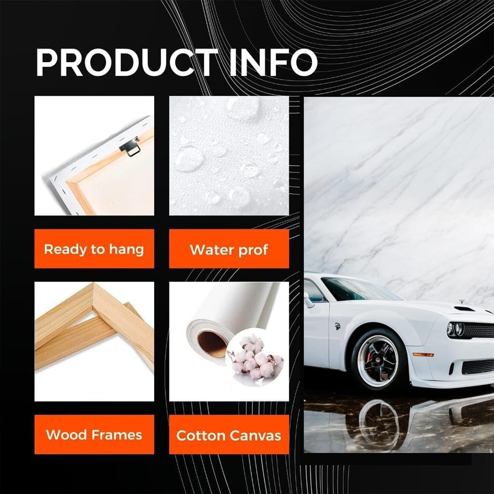 The Dodge SRT marble poster is pure adrenaline on the wall. This painting is like a living beast, ready to break loose at any moment. Wall art for those who live at full speed and are not afraid to leave a mark on the asphalt. See more from the collection: Dodge Art