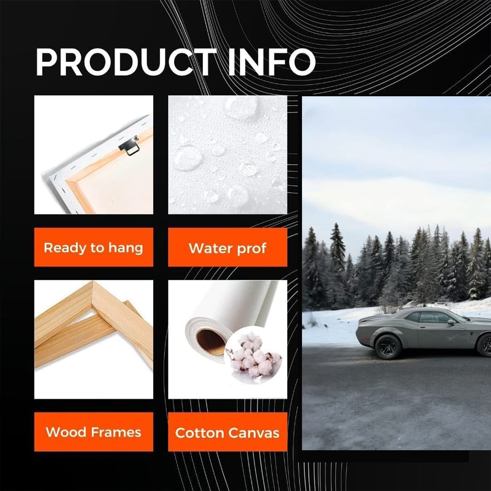 This poster is just a gun! The painting shows a Dodge SRT in a winter setting - as if the beast has broken free. Wall art for those who respect power and style. This is not just an image, it is a real challenge for everyone who appreciates speed and adrenaline. See more from the collection: Dodge Art