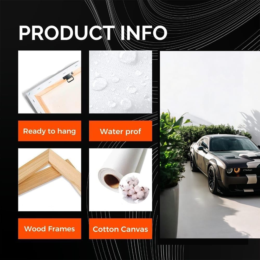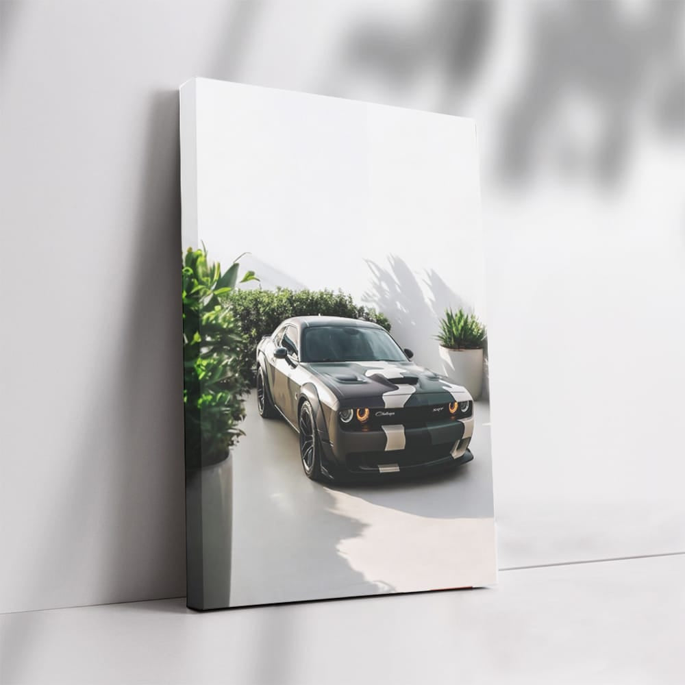 Guys, this is a poster! It features the legendary beast – Dodge, lurking in the garage. This painting is just a bomb for any car enthusiast. Wall art that excites the blood and makes you want to immediately get behind the wheel and rev the engine down the highway. See more from the collection: Dodge Art