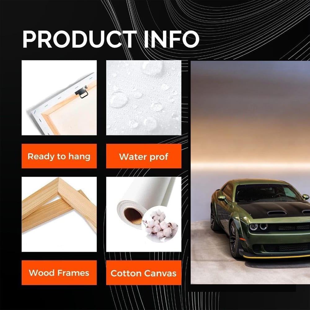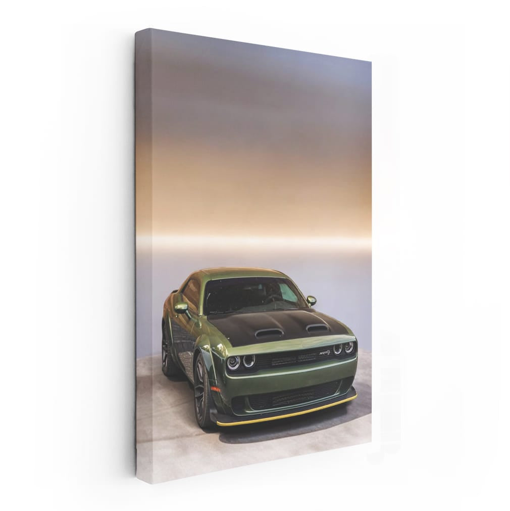 What a masterpiece of wall art! This Dodge poster is a blast, as is its parking lot. The car looks like it's ready to take off. The painting conveys all the power and audacity you feel behind the wheel of this beast. A real must-have for car fans! See more from the collection: Dodge Art