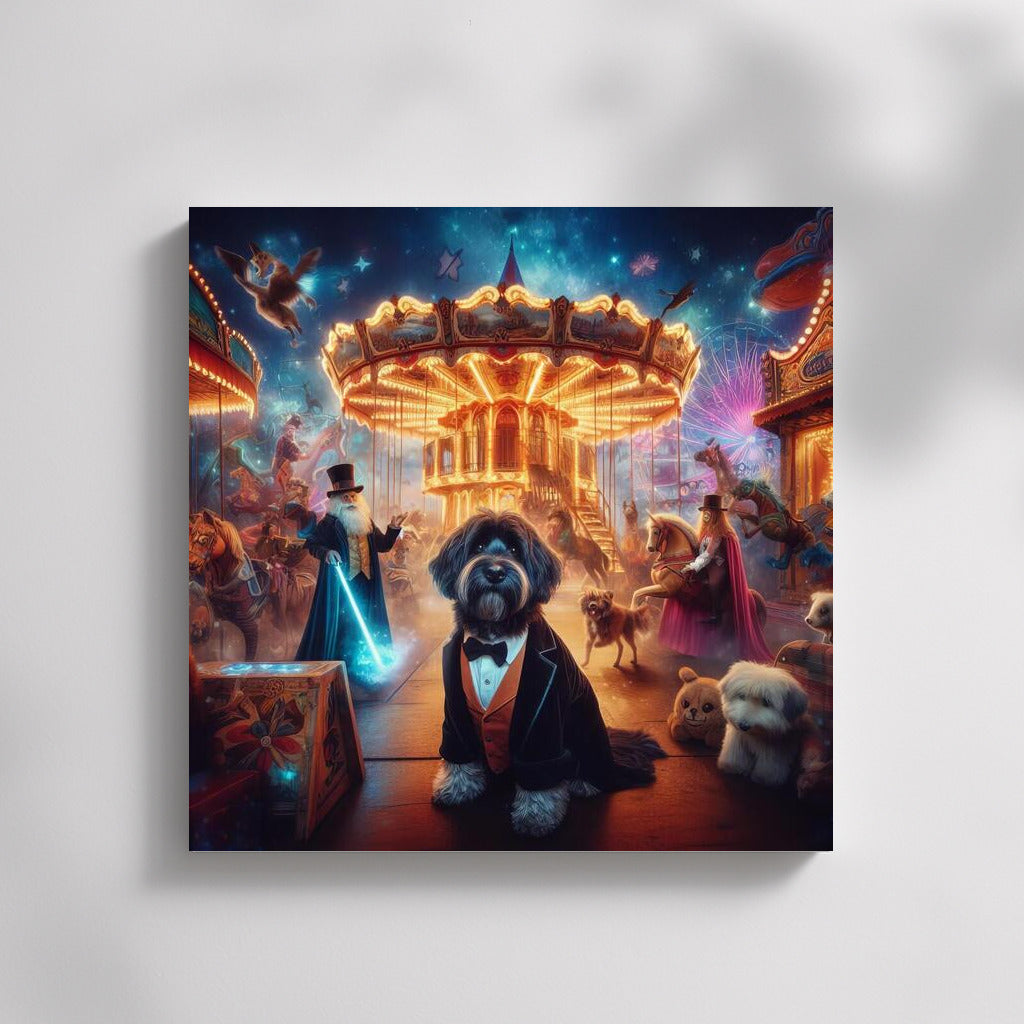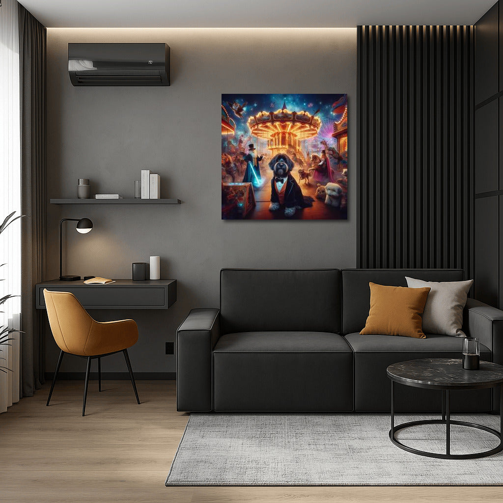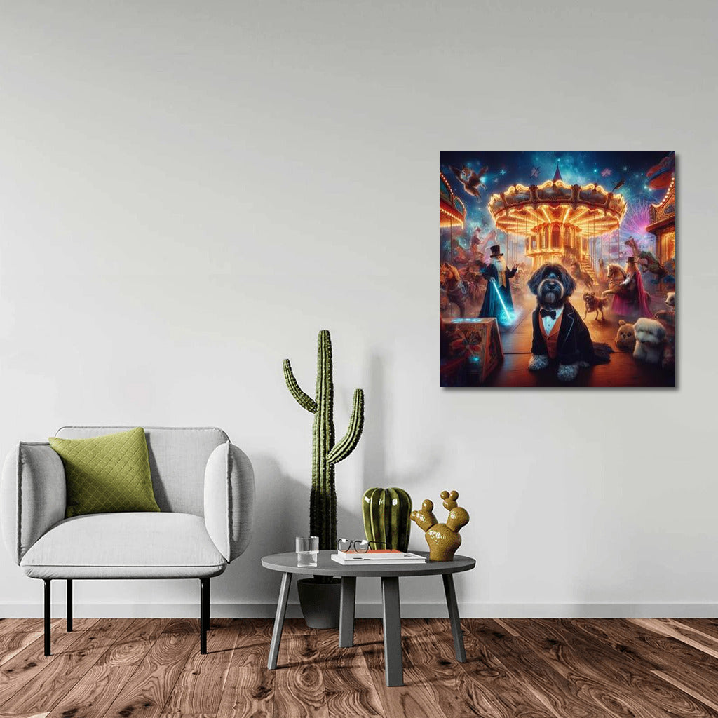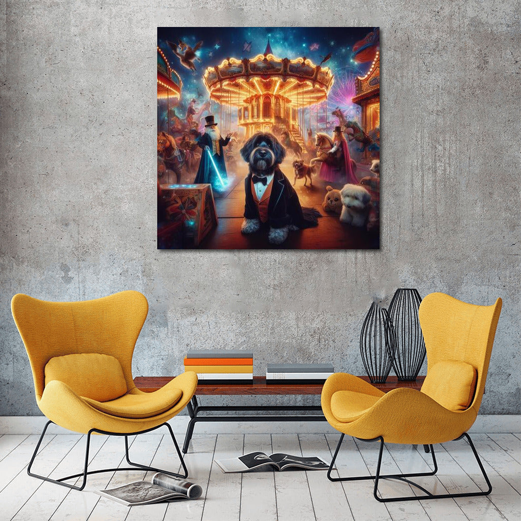 Mysterious adventures in a world of wonders: a dog at a fair with magic and carousels. Poster Dog at a Wonderland 3. Magical wall art! See more from the collection: Animals Art