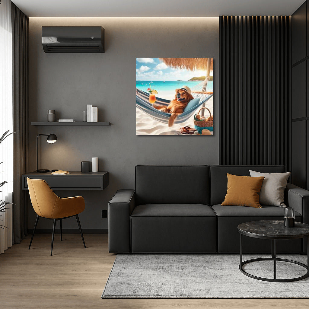 Dog in a Hammock: Beach Relaxation with a Cocktail Wall Art