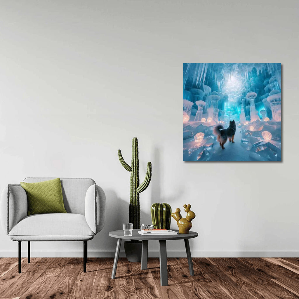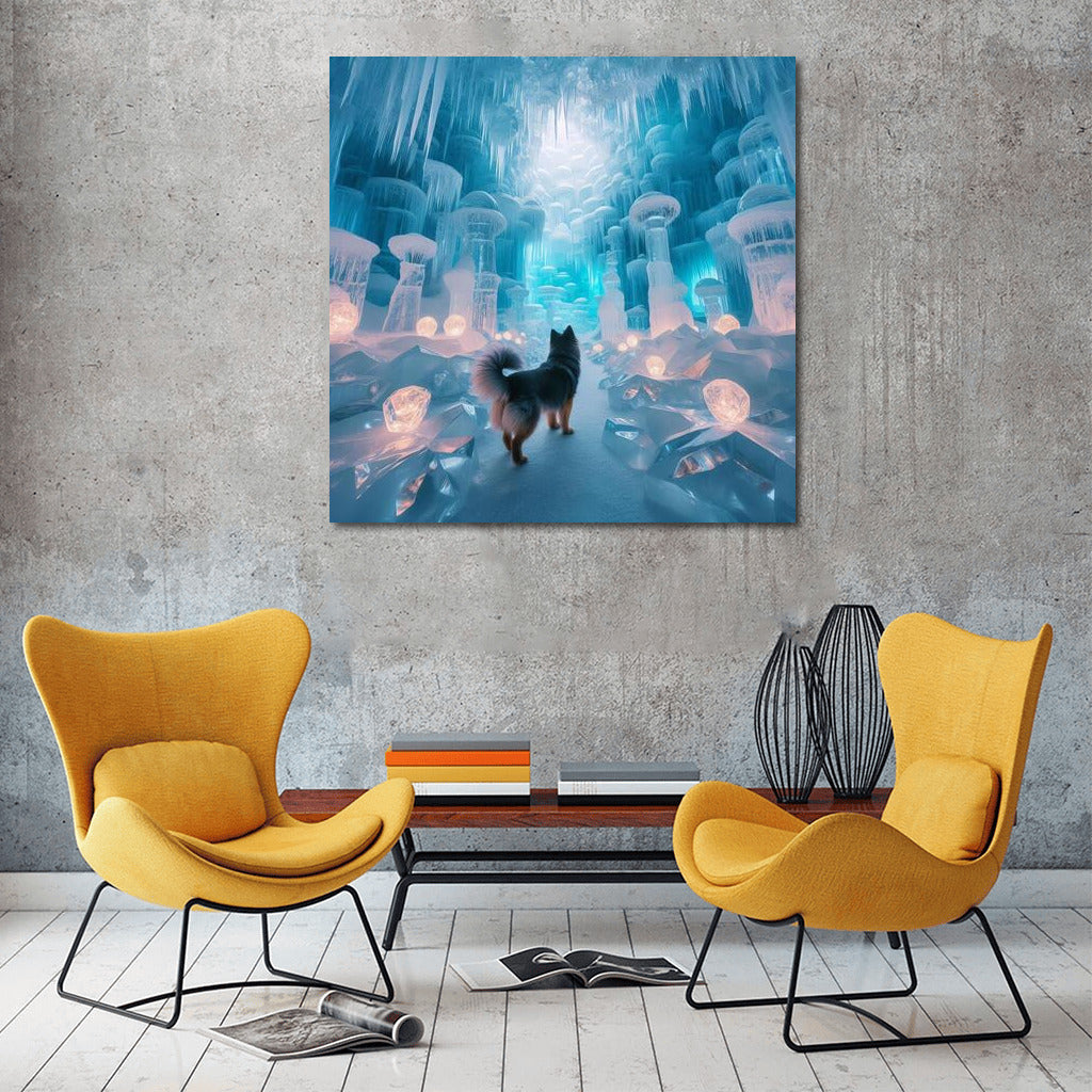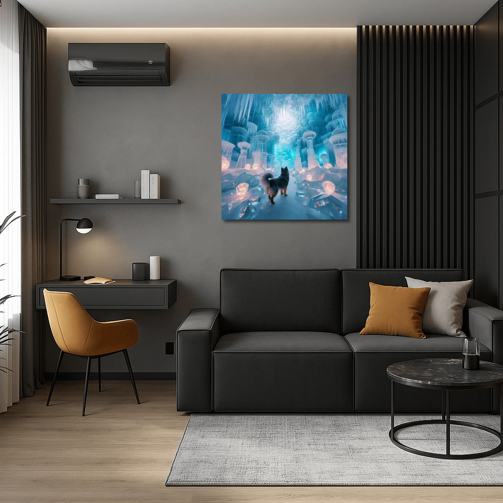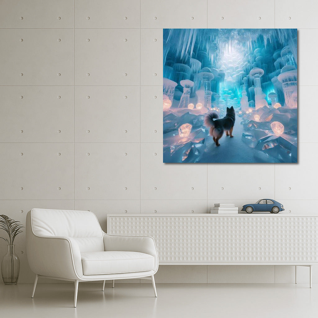 A dog in an ice palace, where every touch turns ice into jewels. Magic wall art for your home! See more from the collection: Animals Art