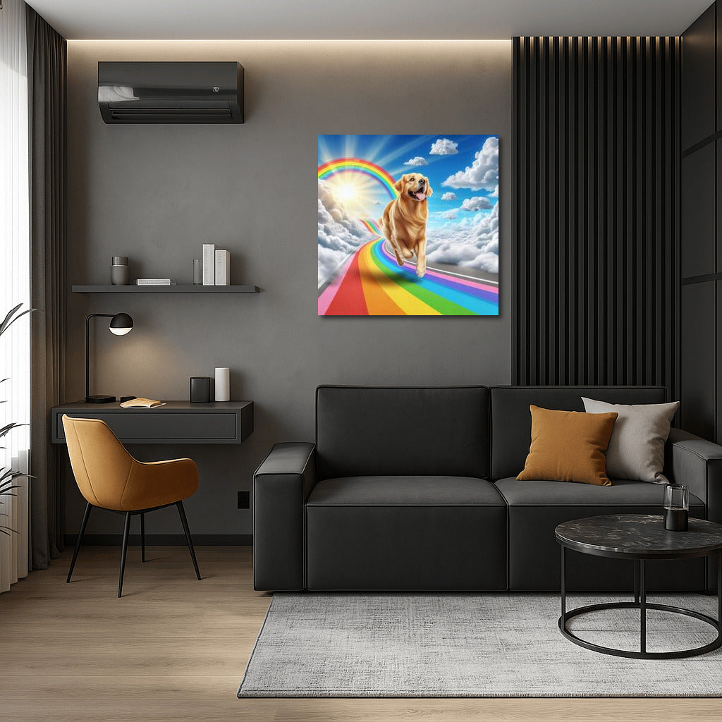 Dog on Rainbow Road among the Clouds: Positive and Smile Wall Art