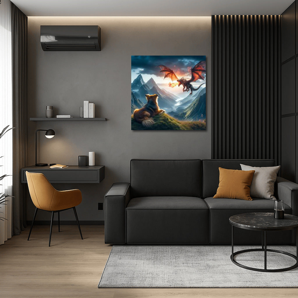 Dragon Flight: Dog in the Skies Above the Mountain Peaks Wall Art