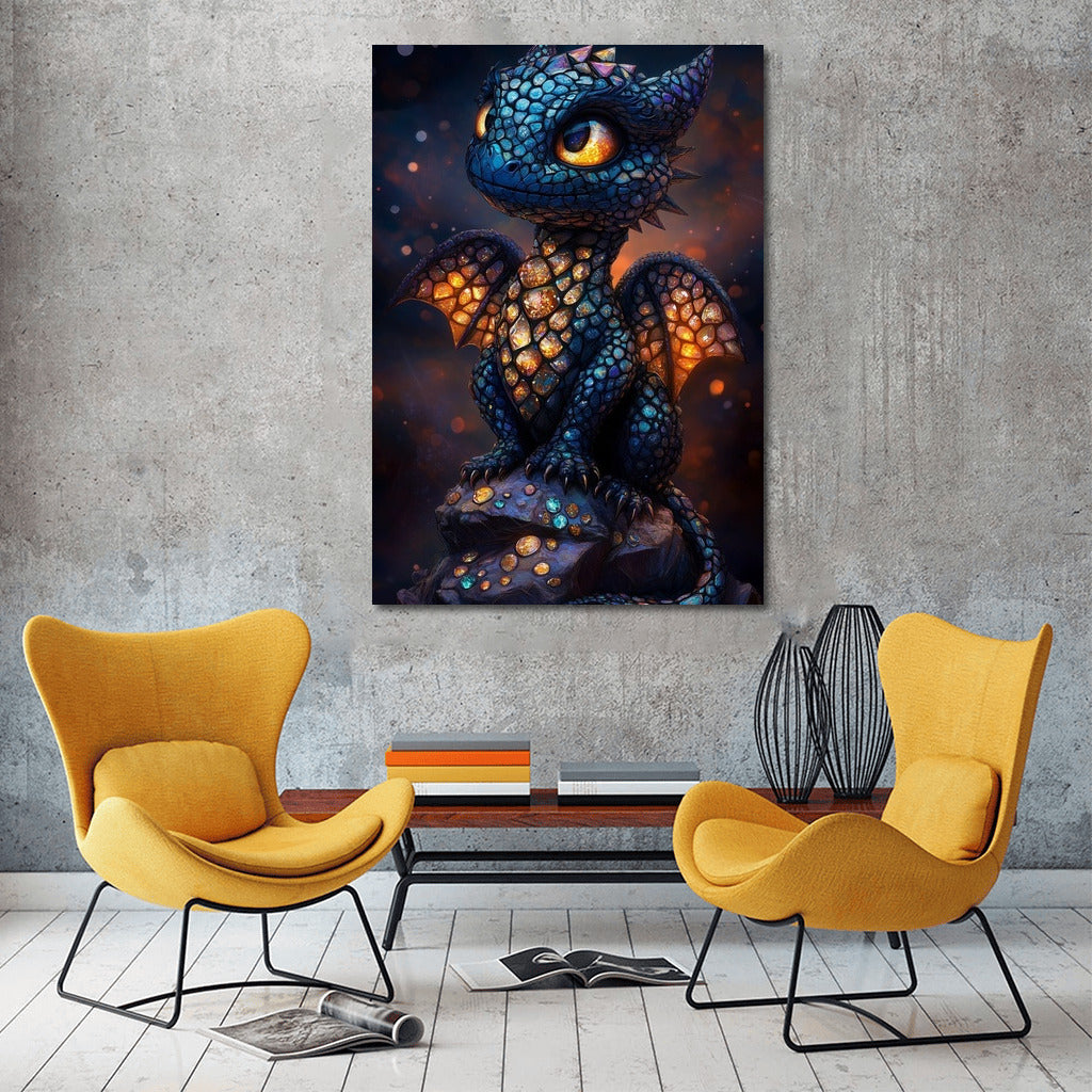 This adorable dragon painting will bring your wall art to life, adding magic and vibrant colors to any interior. See more from the collection: Mixed Wall Art
