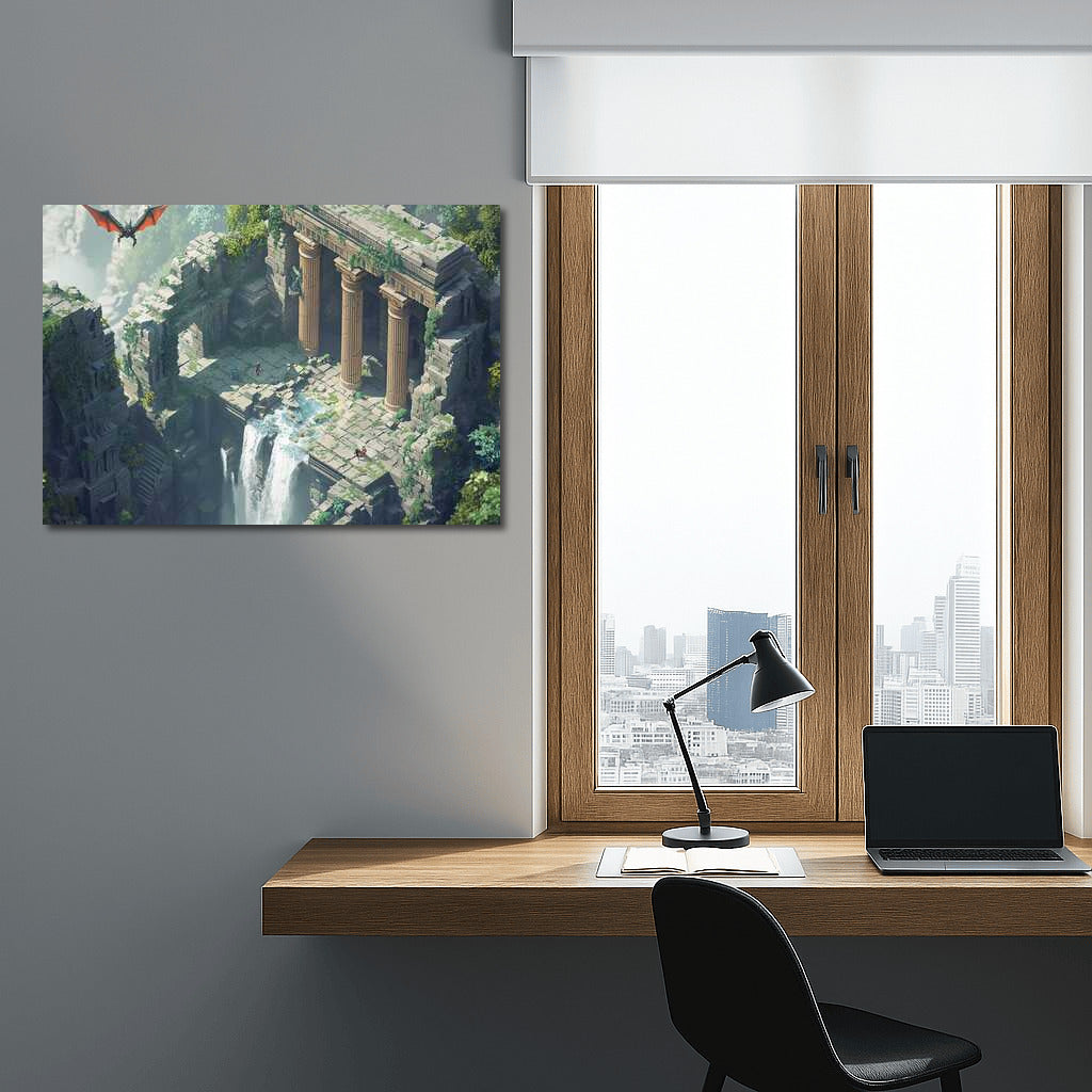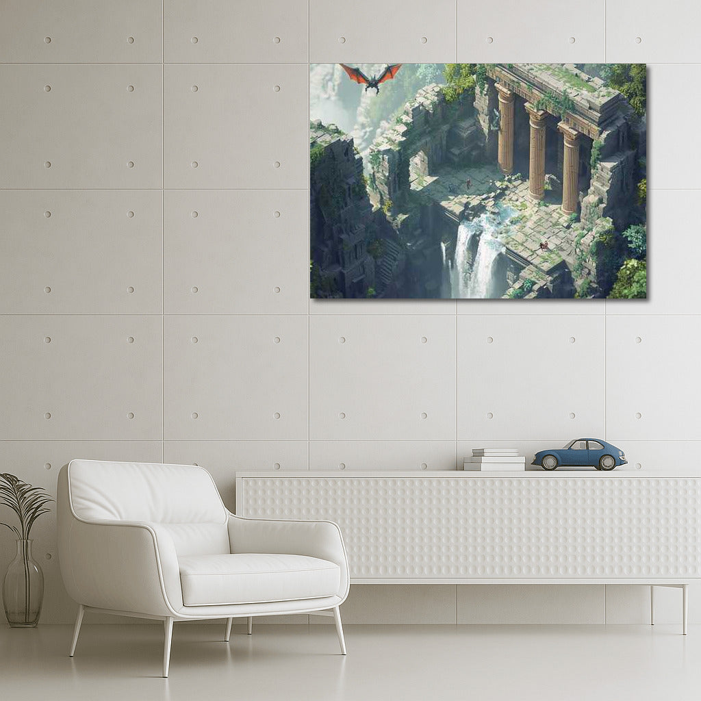 Dragon Skies: An Isometric View of Ancient Ruins in a Fantasy World Wall Art