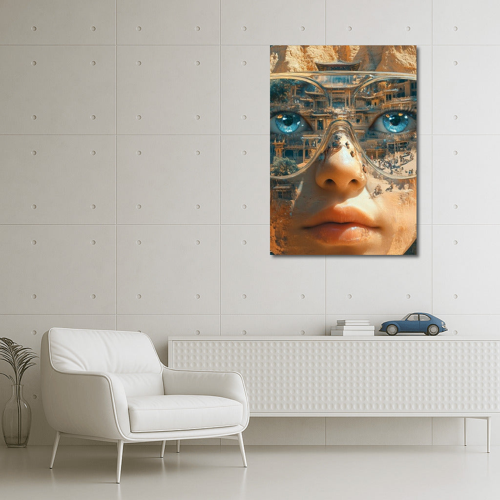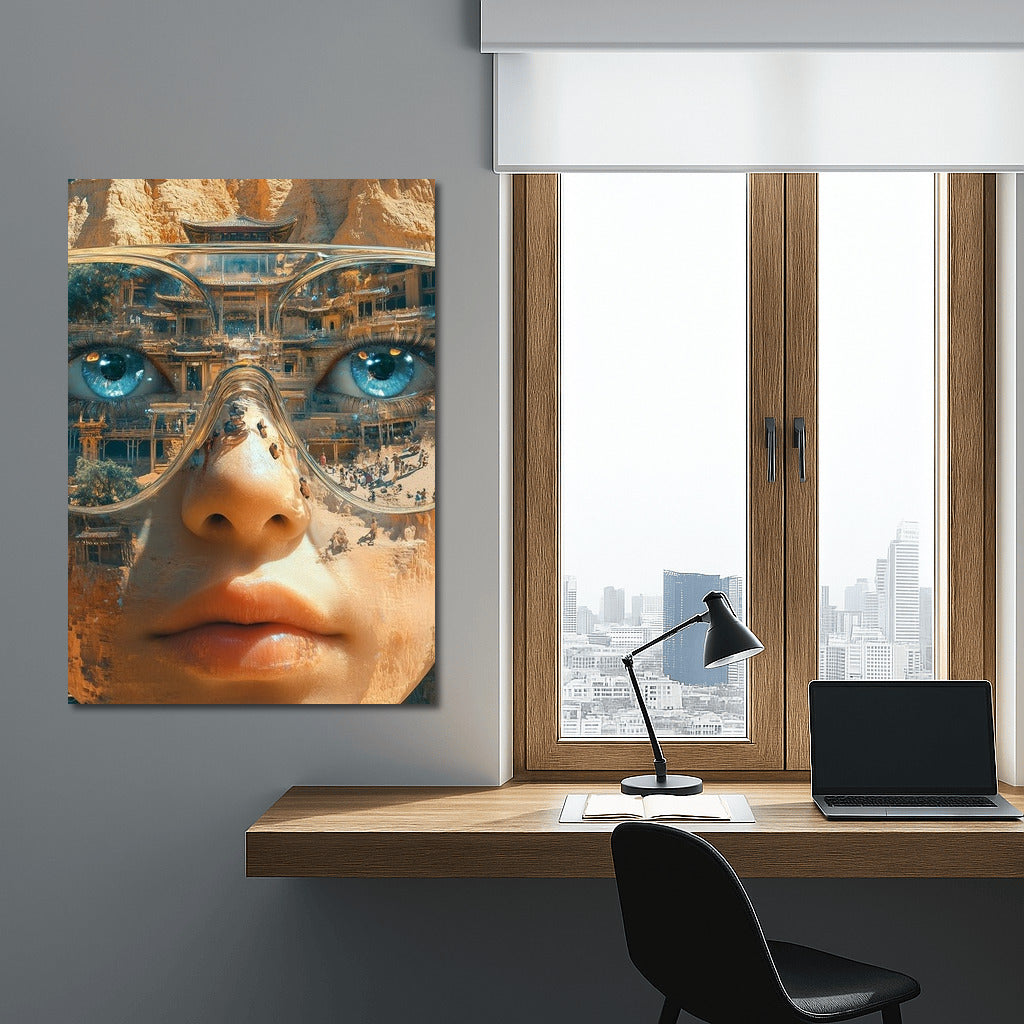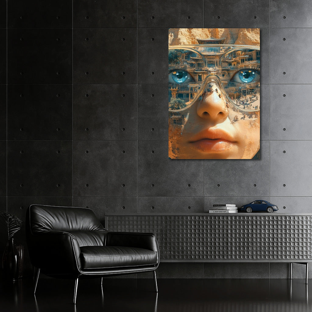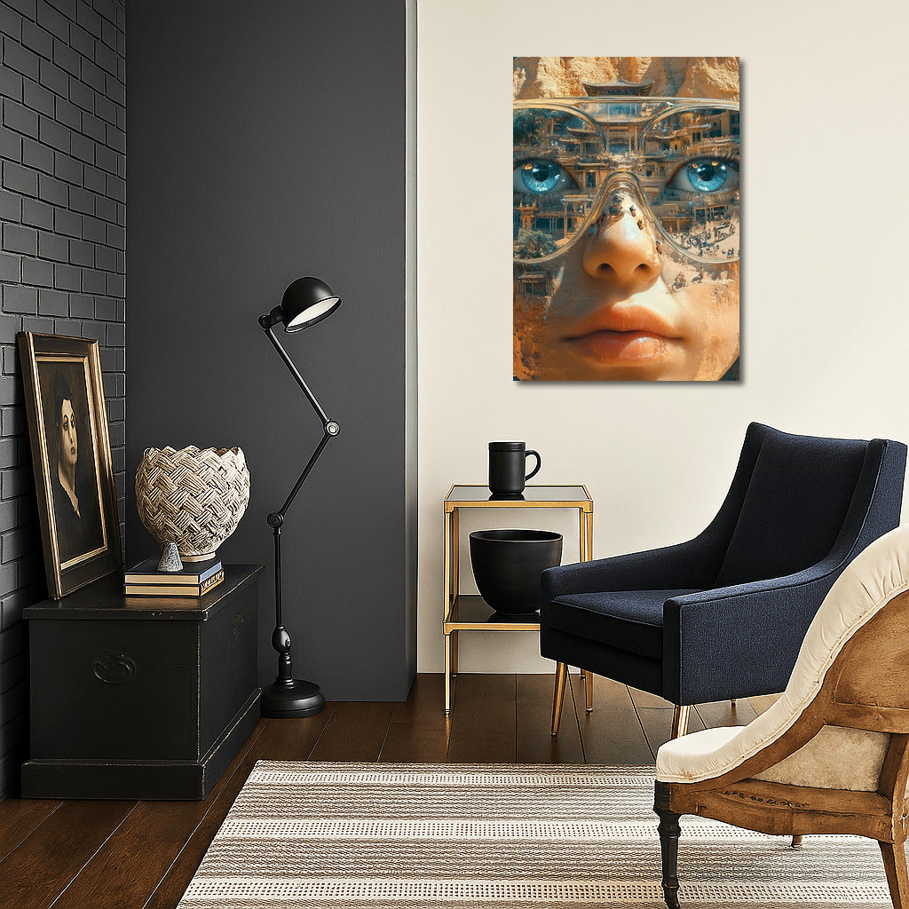 A poster with an original combination of architecture and portrait - a fantasy wall art with a deep look into the dream world. See more from the collection: Mixed Wall Art