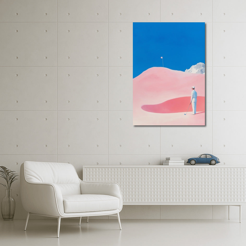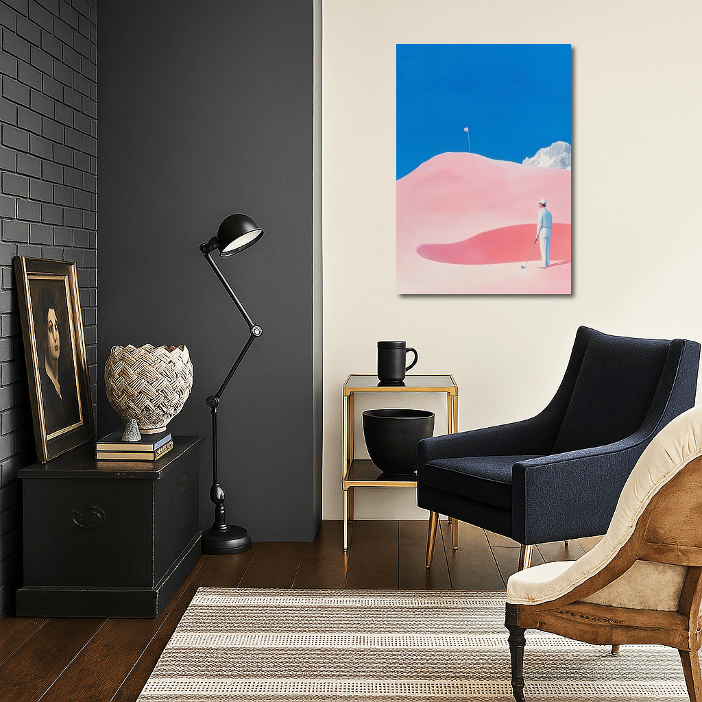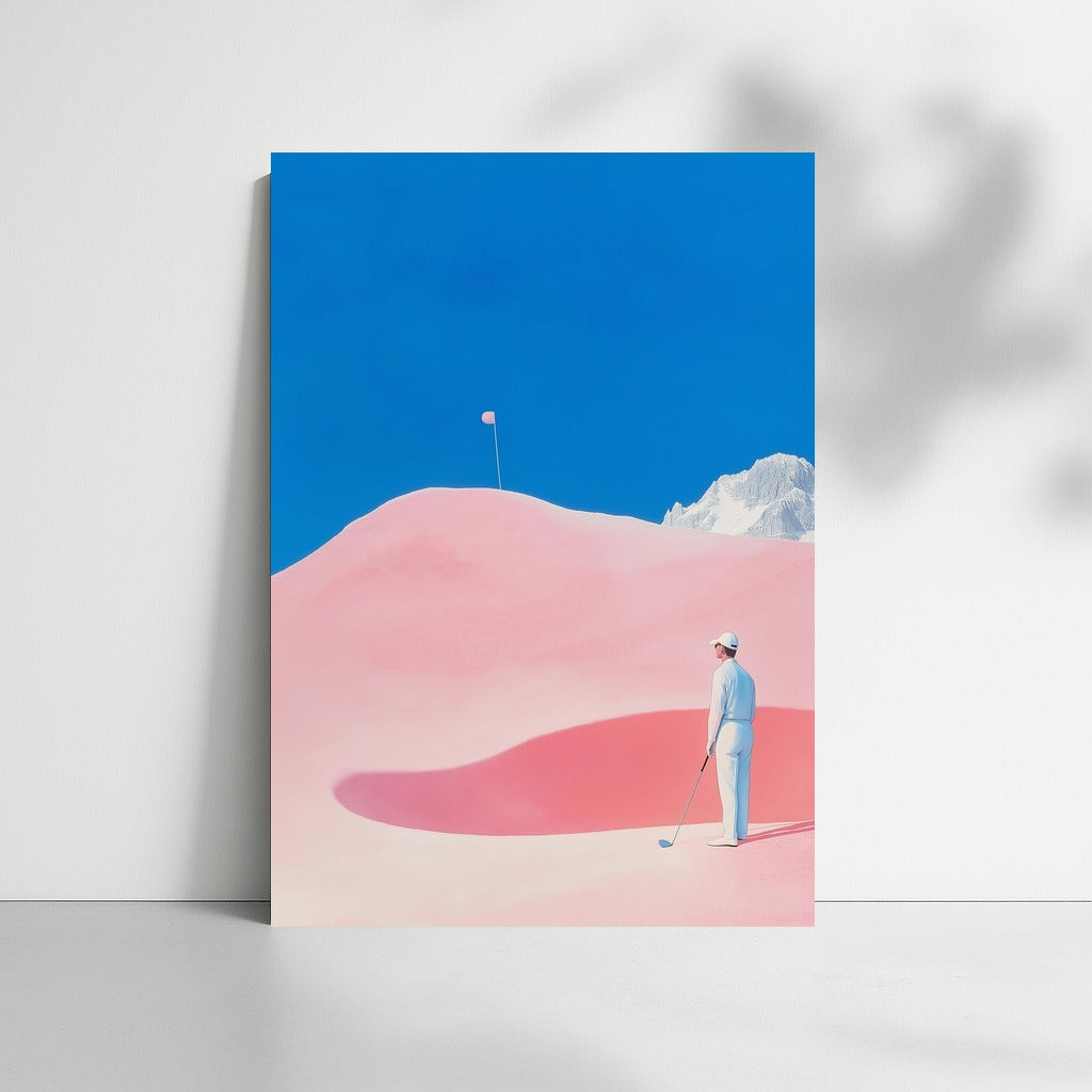 A graceful poster of a dreamy figure on a fantasy golf course. Modern wall art for inspiration. See more from the collection: Mixed Wall Art