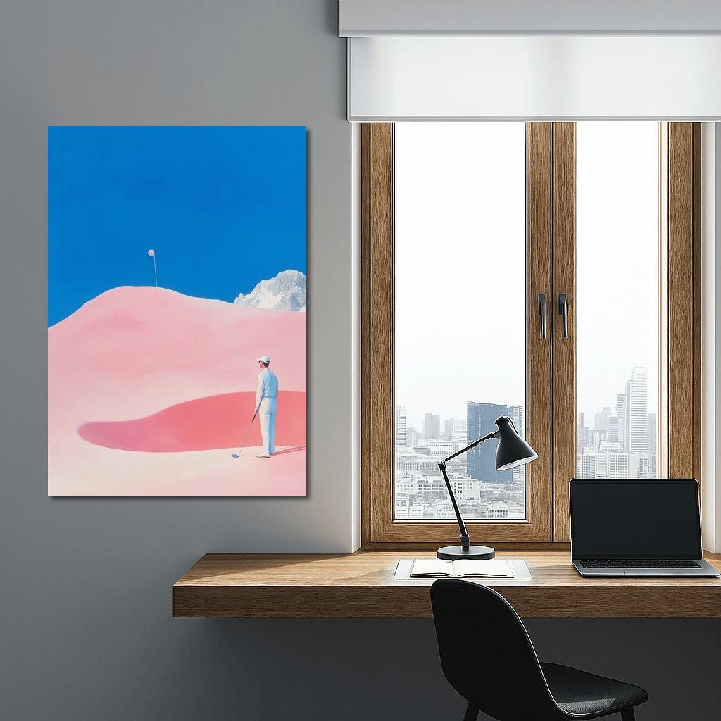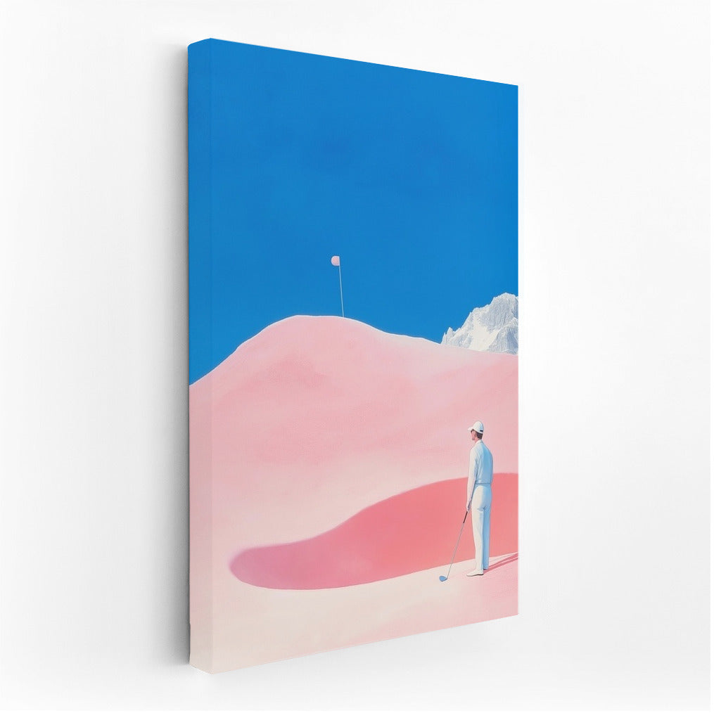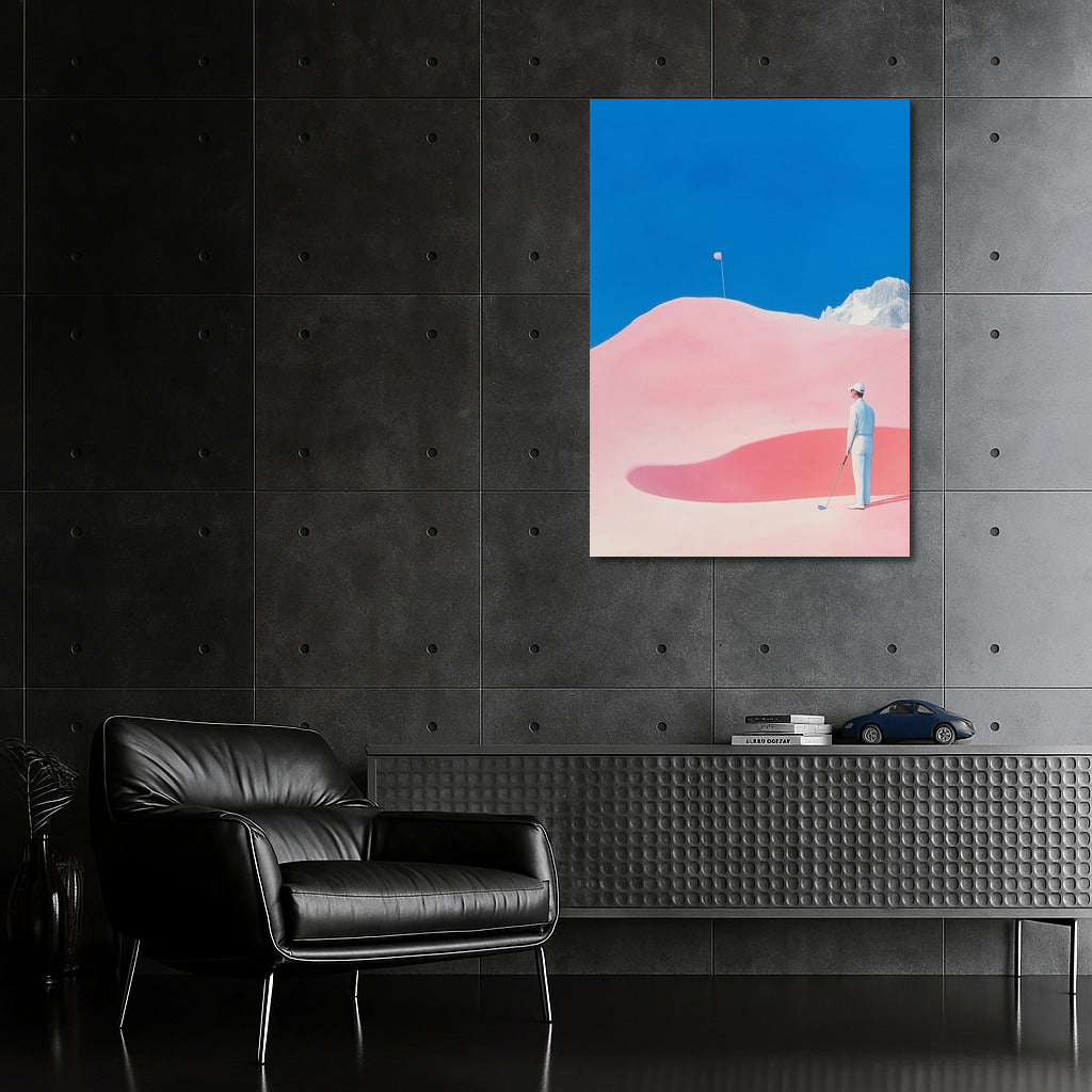 A graceful poster of a dreamy figure on a fantasy golf course. Modern wall art for inspiration. See more from the collection: Mixed Wall Art