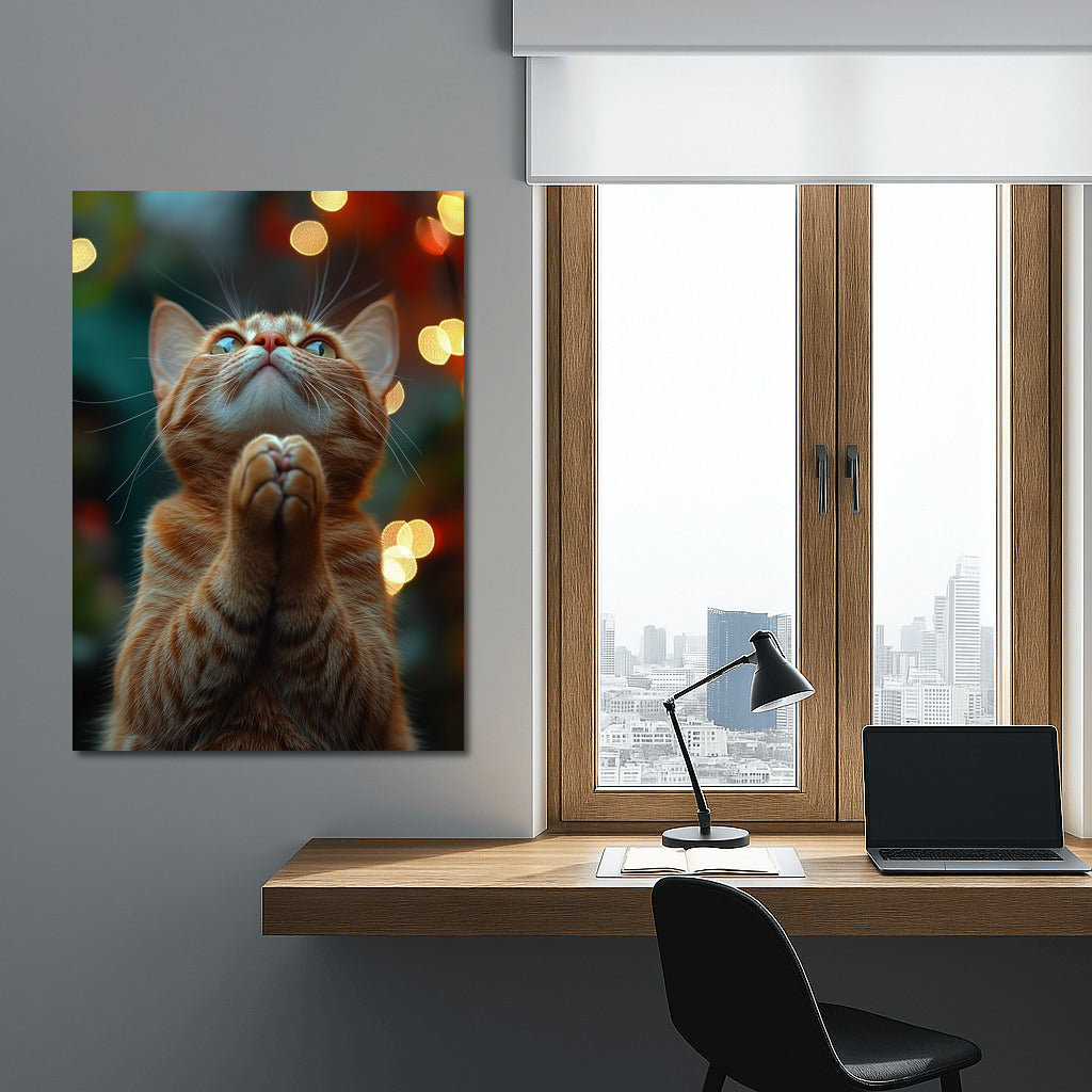 Adorable cat in dreamy lights. This poster is a perfect wall art to create a cozy atmosphere at home. See more from the collection: Animals Art