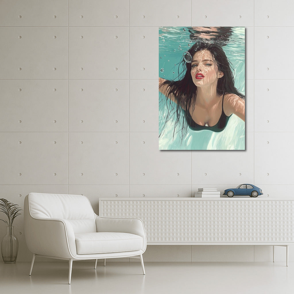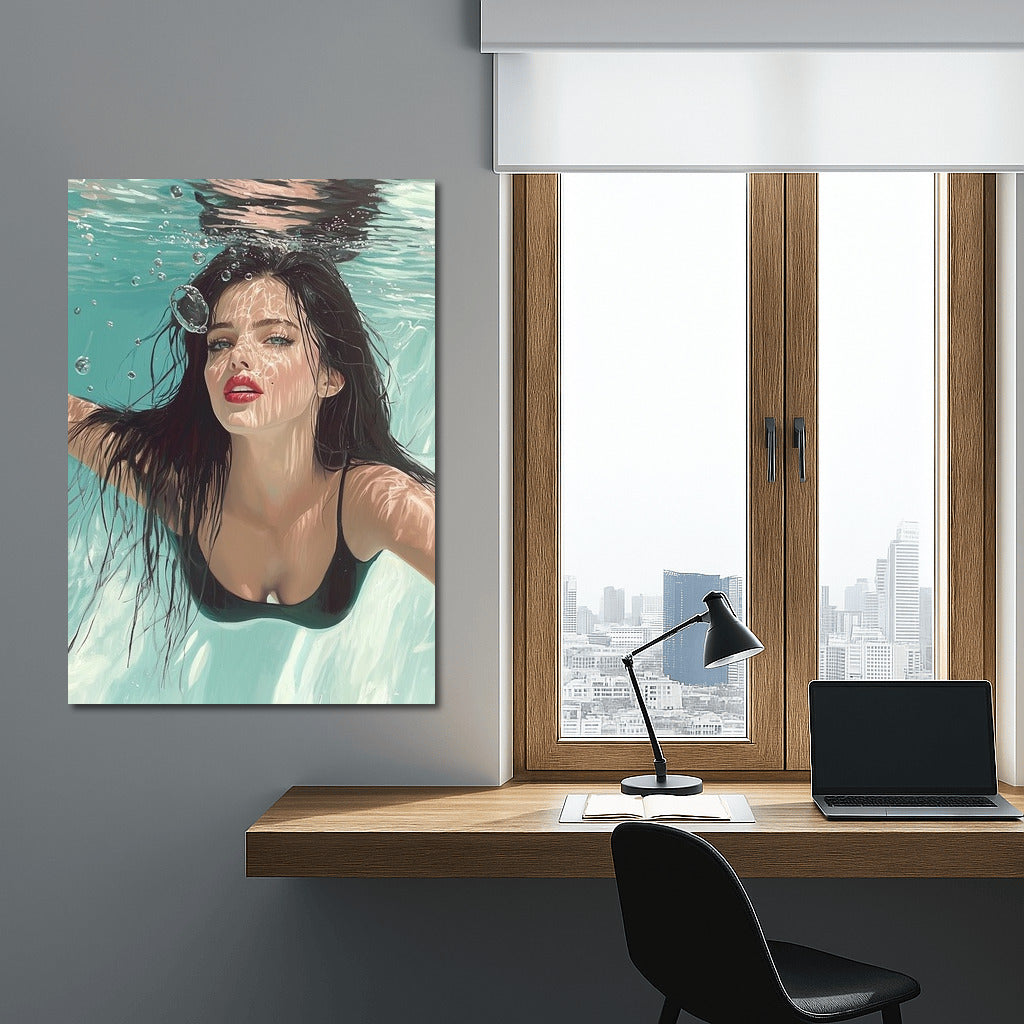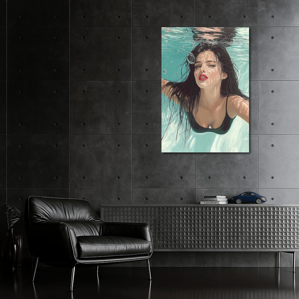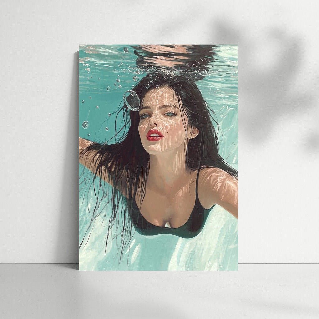 Dive into a world of dreams with this mesmerizing painting. The poster will enliven your interior with the freshness and calmness of water. See more from the collection: Wall Art with Women
