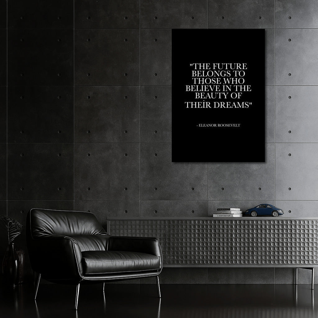 Inspirational poster with Eleanor Roosevelt quote: The future belongs to those who believe in the beauty of their dreams. Motivation and style! See more from the collection: Inspirational & Motivational Quotes Art
