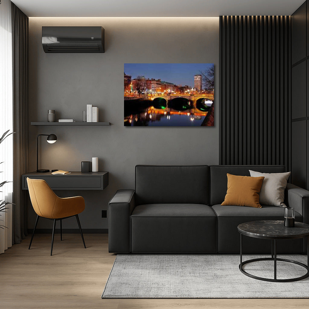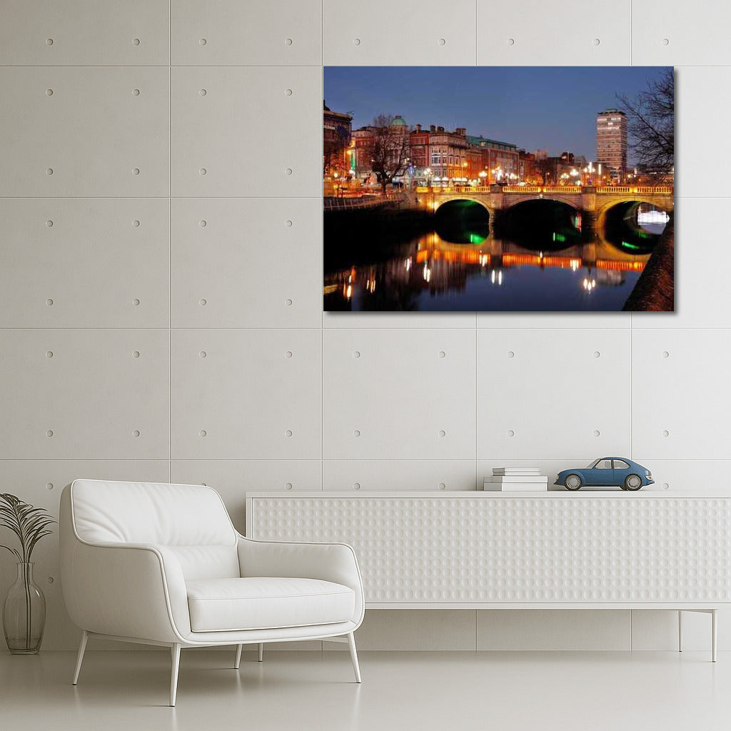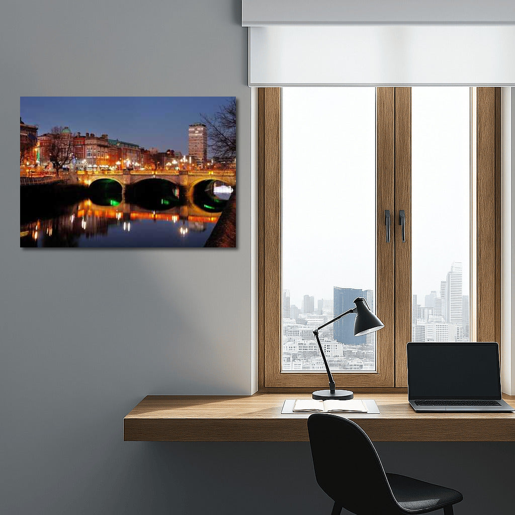 Dublin Evening Lights: Reflections of Bridges and City Lights Wall Art