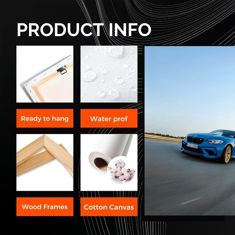 This poster is fire! BMW M2 in blue, like lightning, rushes at full speed. The painting comes to life right on the wall, you feel the engine roaring. This is wall art for real fans of speed, the embodiment of adrenaline and power. The wall will talk to you. See more from the collection: BMW 2 Series Art