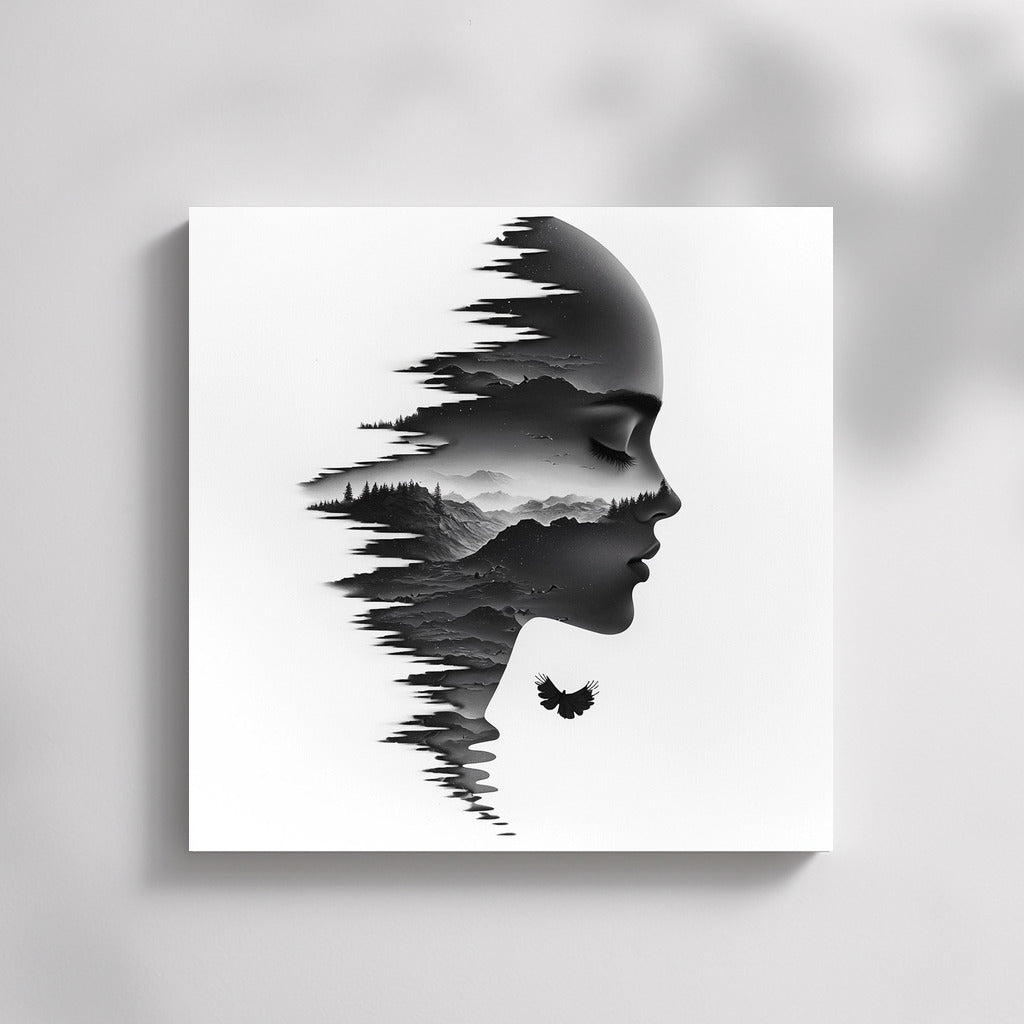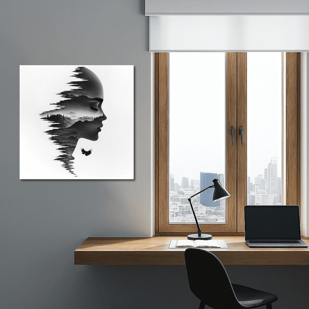 A fusion of nature and soul, this poster is a mesmerizing wall art that creates worlds within the human silhouette. See more from the collection: Mixed Wall Art