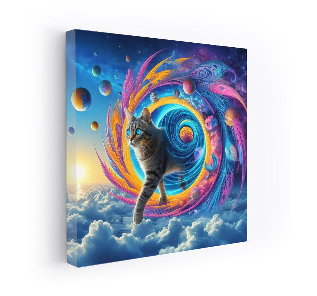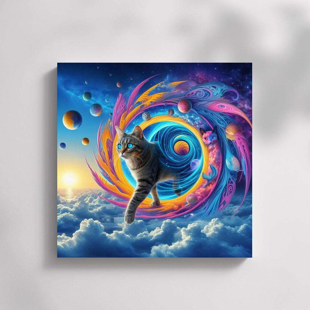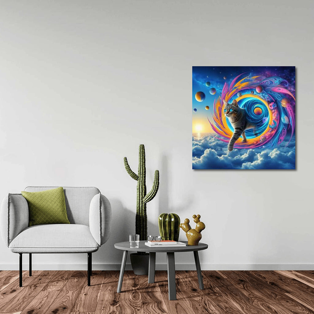 Dive into the world of parallel universes with the Egyptian Mau poster. The cat leads through the portals of space and dreams. See more from the collection: Animals Art
