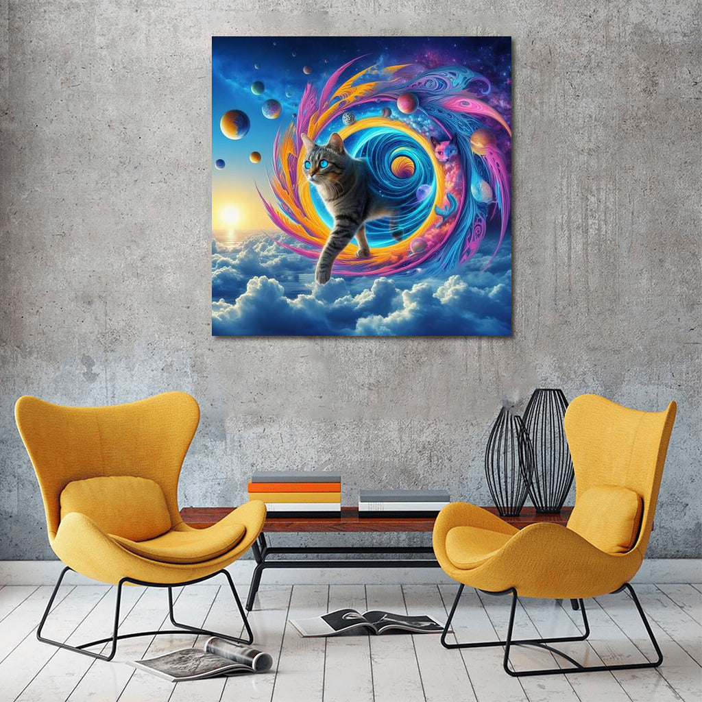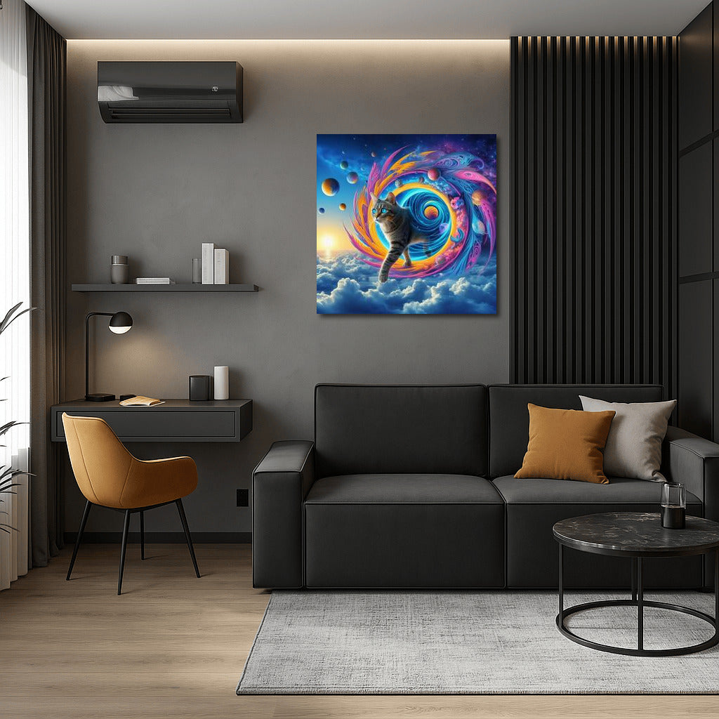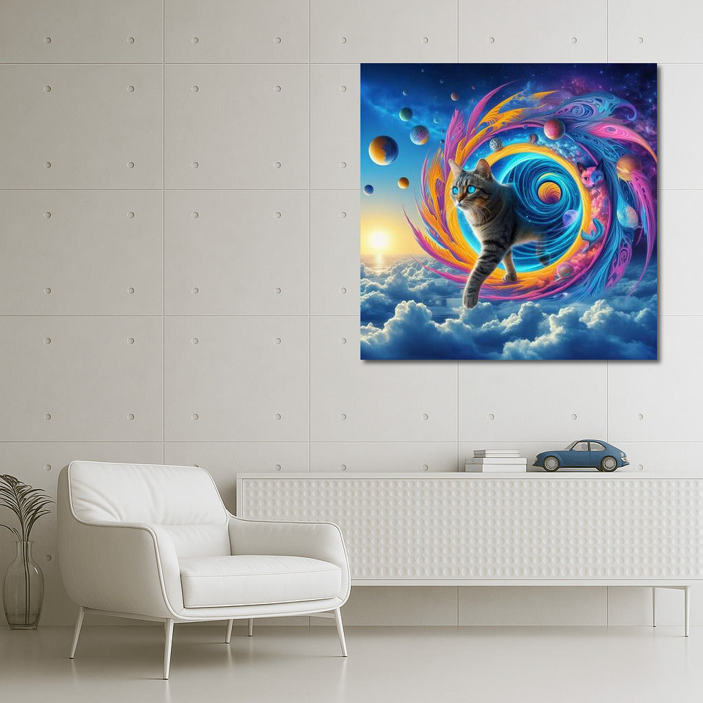 Dive into the world of parallel universes with the Egyptian Mau poster. The cat leads through the portals of space and dreams. See more from the collection: Animals Art