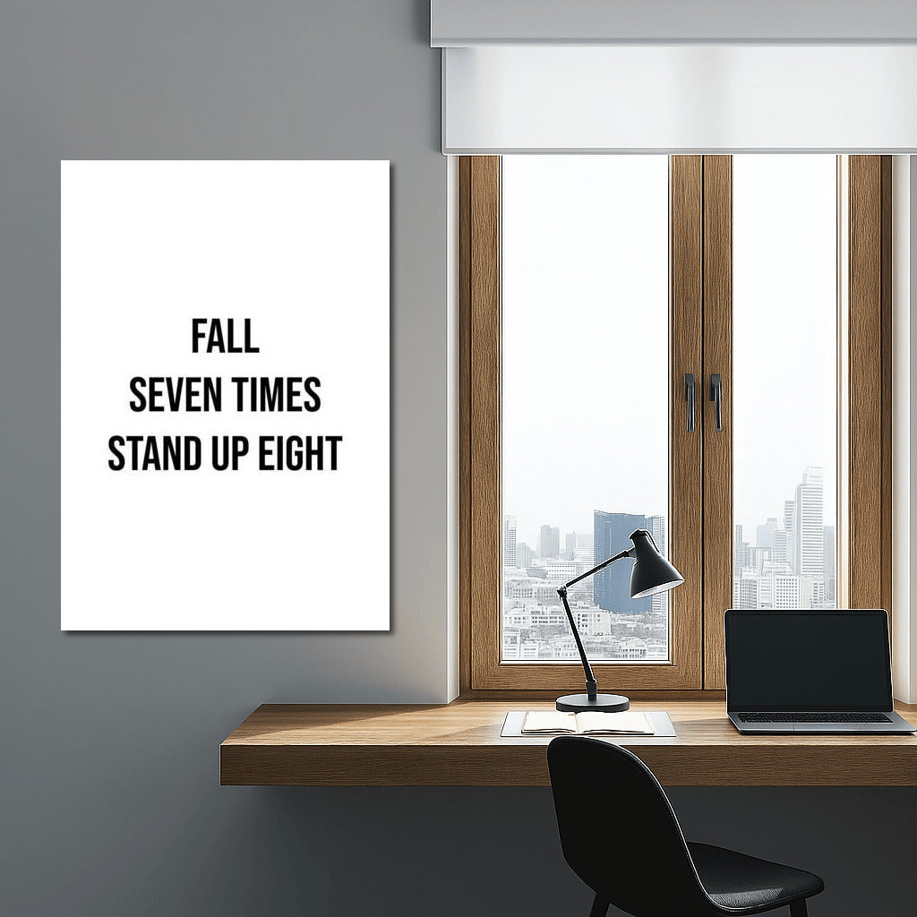 Fall seven times, stand up eight poster inspires you to win every day. Wall art full of motivation and fortitude. See more from the collection: Inspirational & Motivational Quotes Art