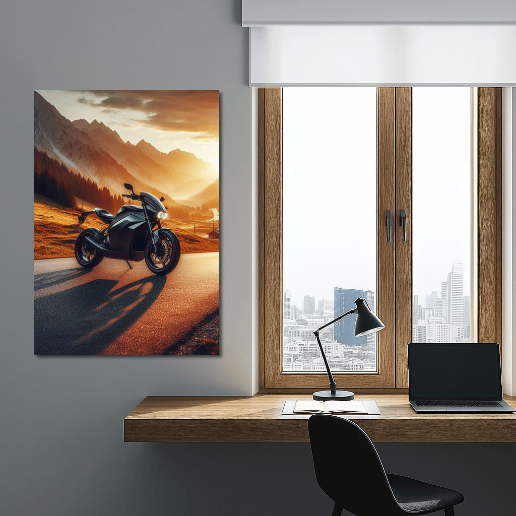 Electric Motorcycle at Sunset: Speed and Freedom on a Mountain Road Wall Art
