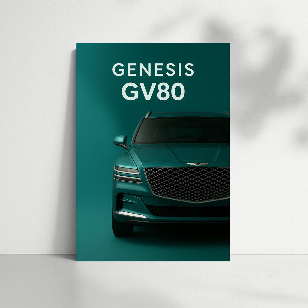 Elegant Genesis GV80 poster: vibrant wall art for lovers of style and modern car design. See more from the collection: Genesis Art