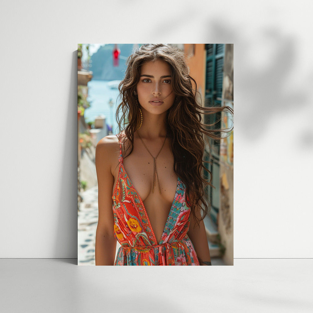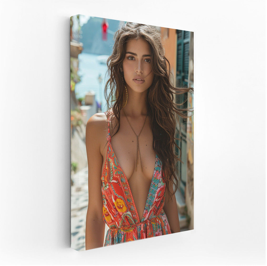 Elegant wall art with a sophisticated girl in a bright dress. The magic of style and grace comes alive in your interior. See more from the collection: Wall Art with Women