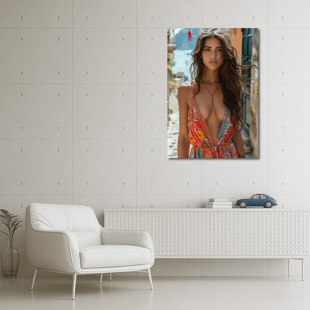 Elegant Blonde in a Bright Dress: Style and Grace Wall Art