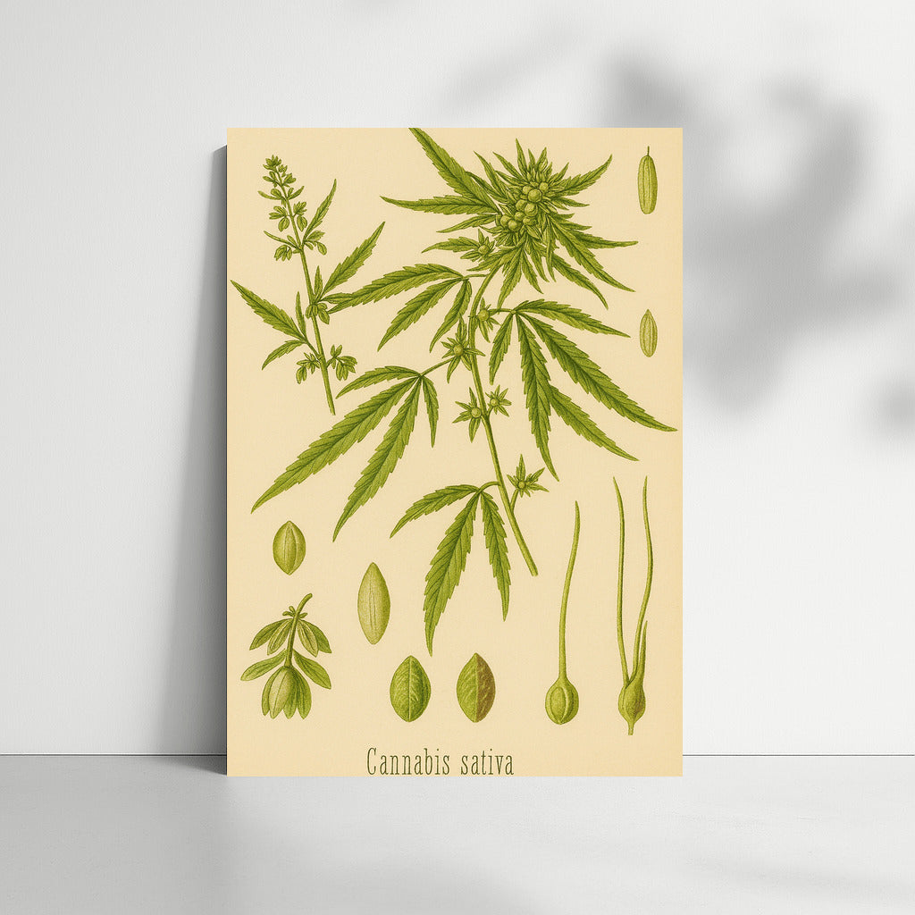 Elegant poster with botanical illustration of Cannabis sativa. Nature wall art for harmony and inspiration. See more from the collection: Cannabis Art