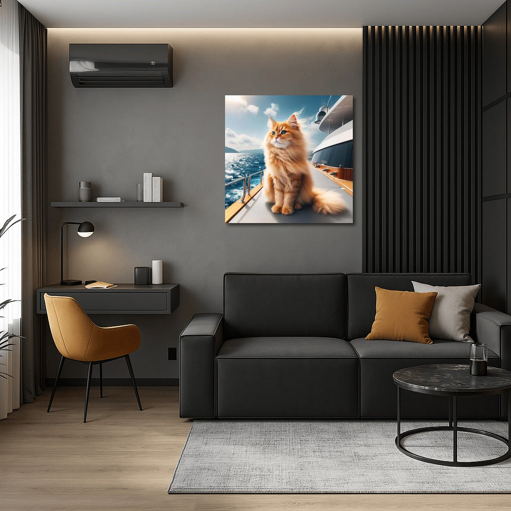 Elegant Cat on a Luxury Yacht: Sophisticated Charm and Freedom Wall Art
