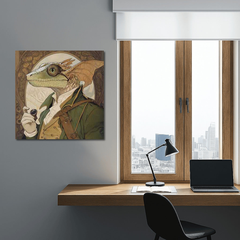 Dive into the world of Fantasy with this unusual poster: a dragon in an elegant outfit, enlivening the walls with mysticism and adventure. See more from the collection: Fantasy Art