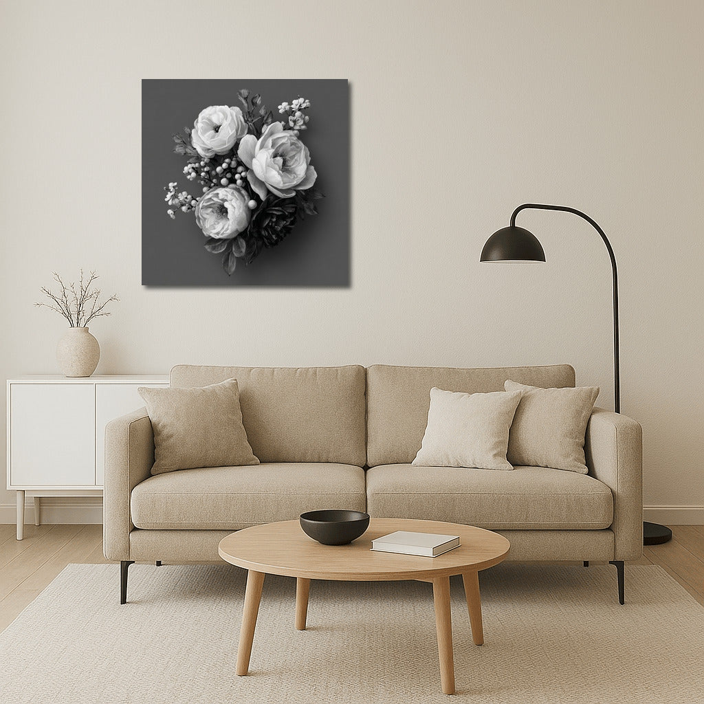 Delicate peonies come to life in this floral painting, creating elegant wall art full of harmony and sophistication. See more from the collection: Flowers Art