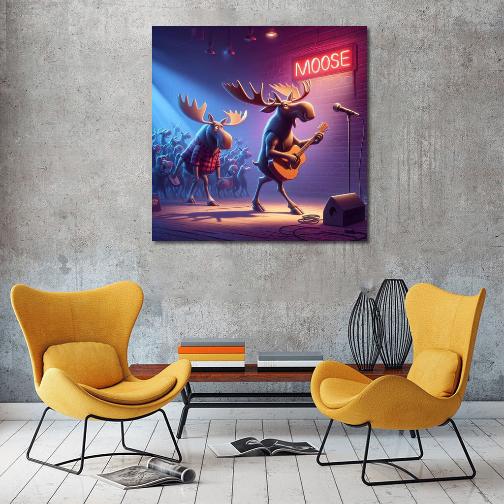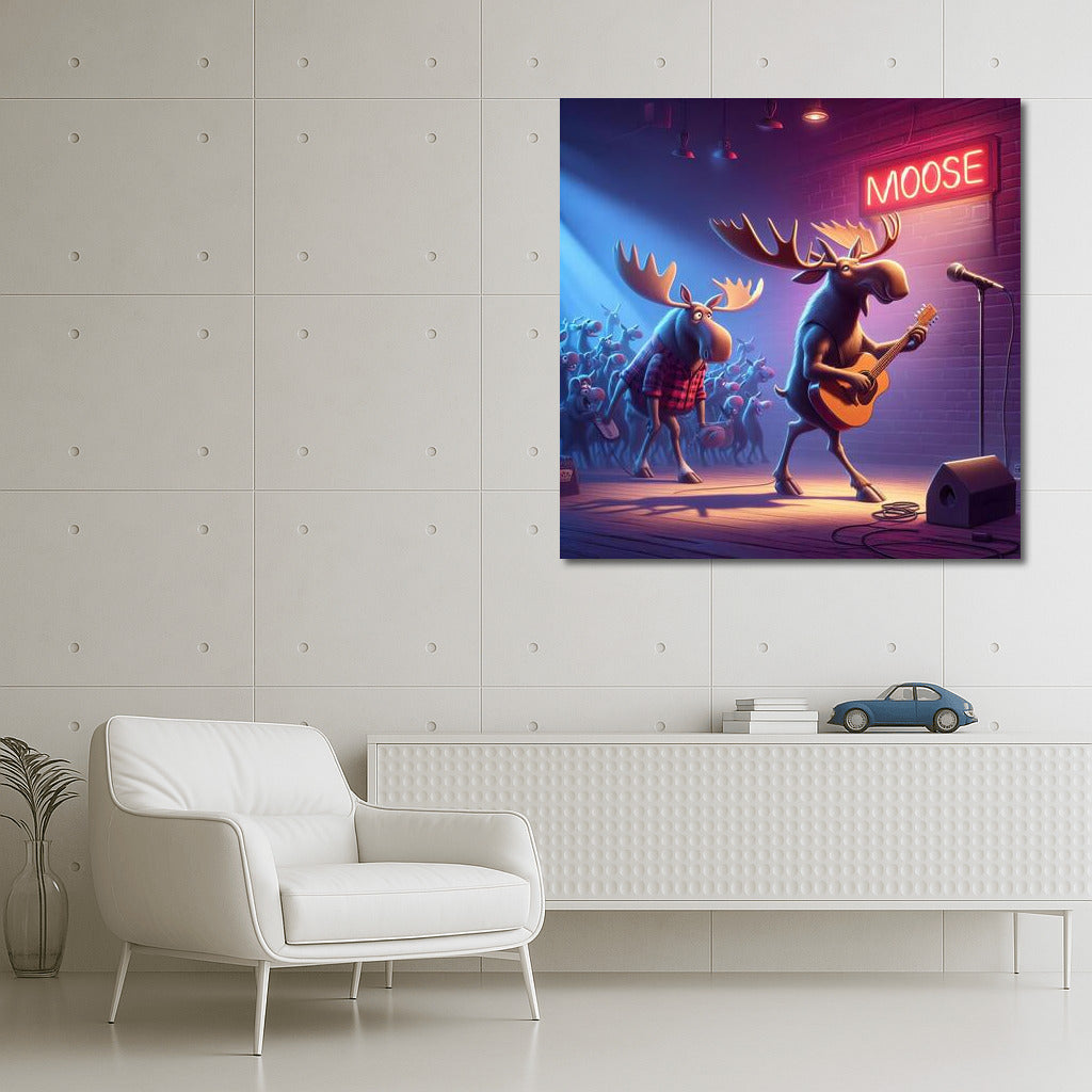 Dive into the world of music with the Moose poster. Wall art comes to life when the moose gather for a concert at the club! See more from the collection: Animals Art