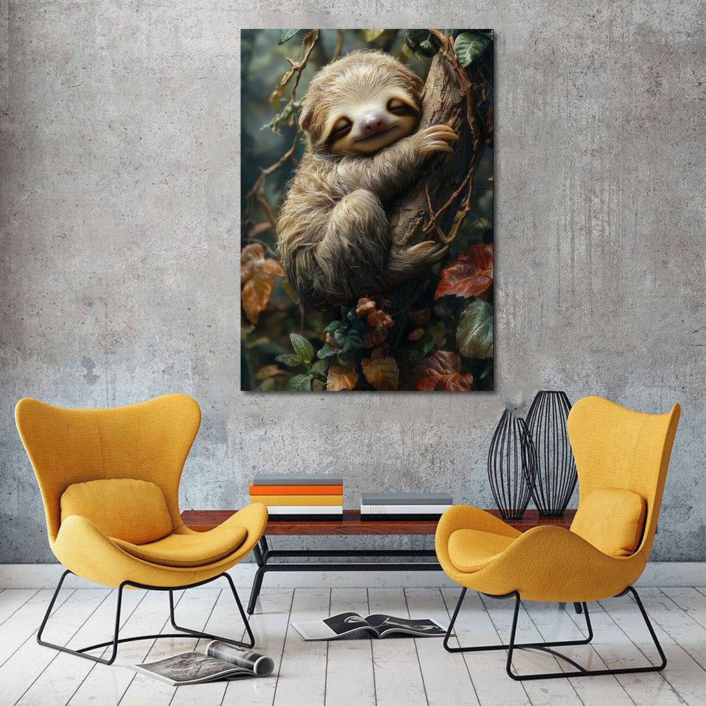 A cute sloth in the arms of nature. This poster will be the highlight of your wall art, embodying coziness and tranquility. See more from the collection: Mixed Wall Art