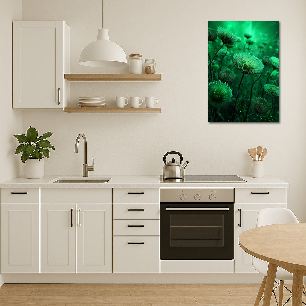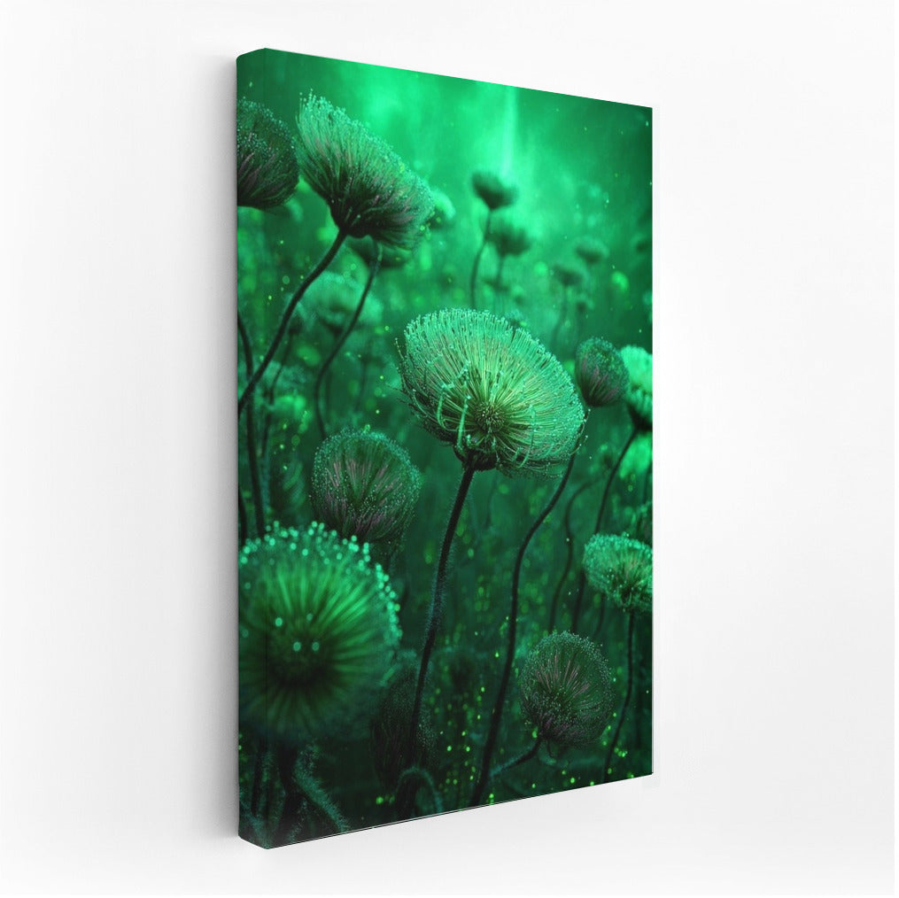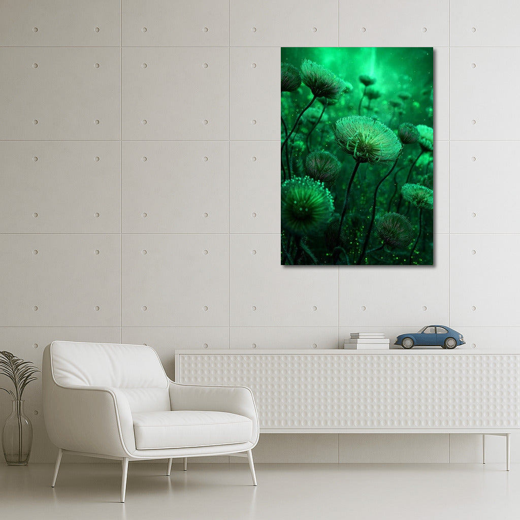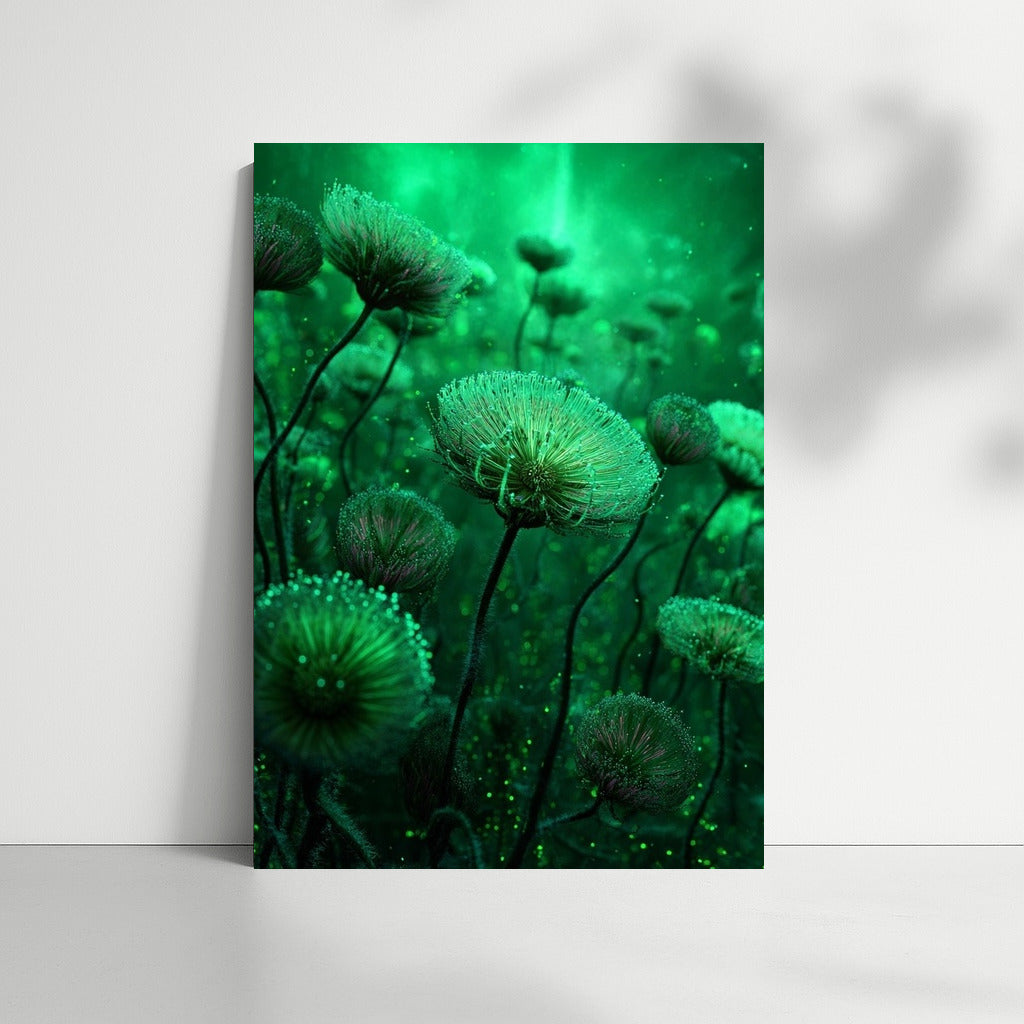 Dive into an emerald kingdom with a wall poster where mysterious flowers resemble fairy-tale worlds of nature. See more from the collection: Flowers Art