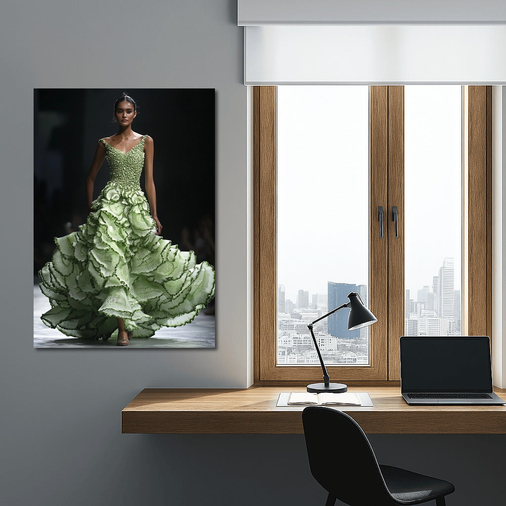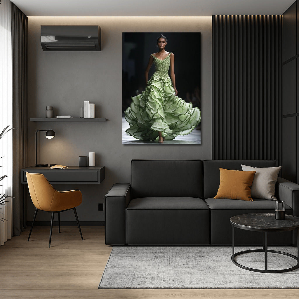 Exquisite wall art: a painting where grace and style merge in a dance of emerald shades. Add elegance to your interior! See more from the collection: Fashion Art