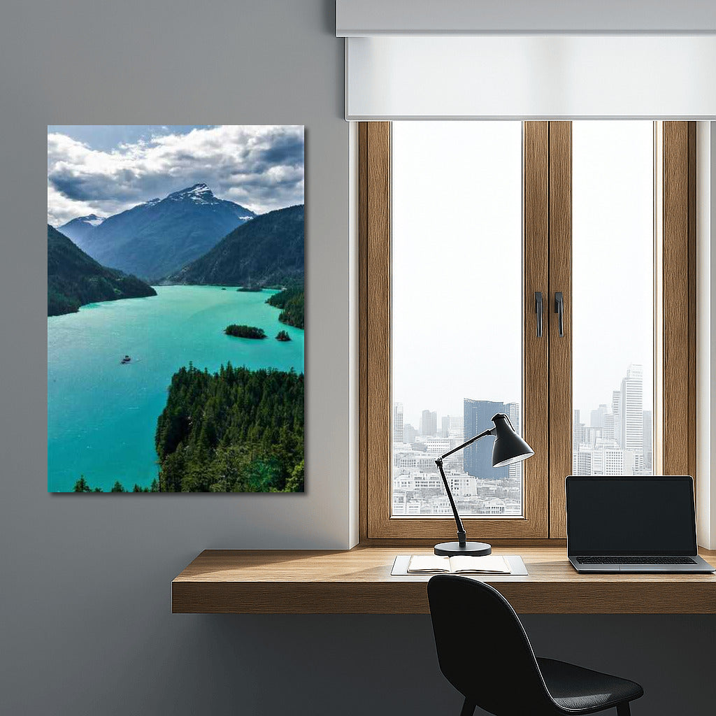 Emerald Waters and Mountains of Washington: US Landscape for Travel Wall Art