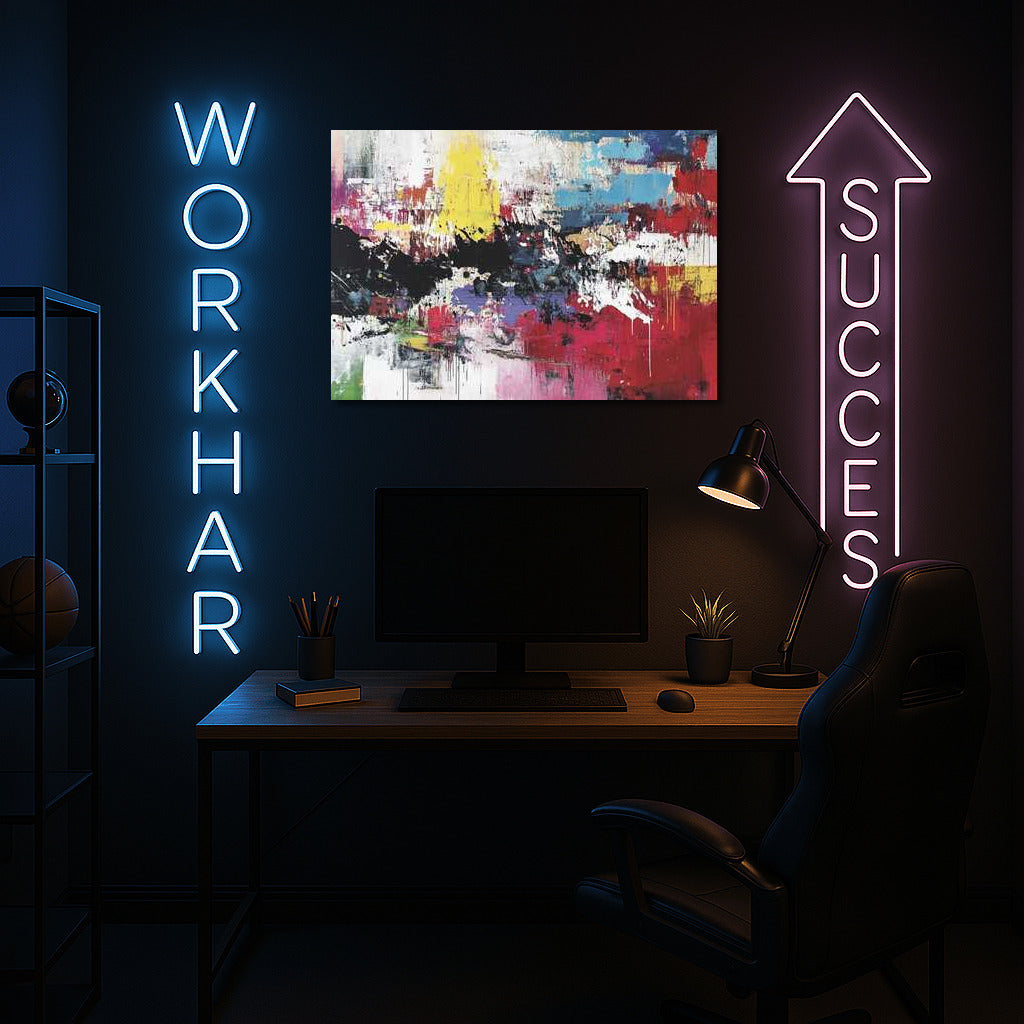 And now let's step into the heart of our operation — our workshop, where the real magic happens. Here, large printers and vibrant colors work together to create paintings that make hearts beat faster.