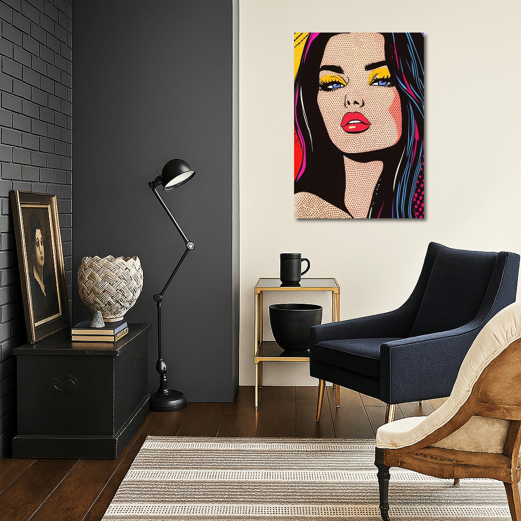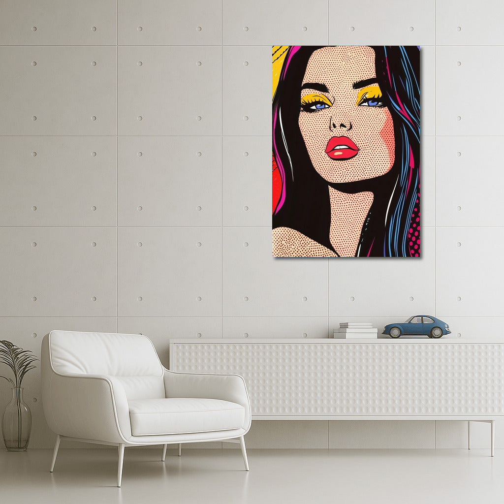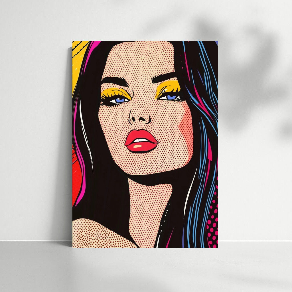 Vibrant pop art poster: a stylish portrait combining bold colors and graphics. Wall art that brings your space to life. See more from the collection: Pop Art