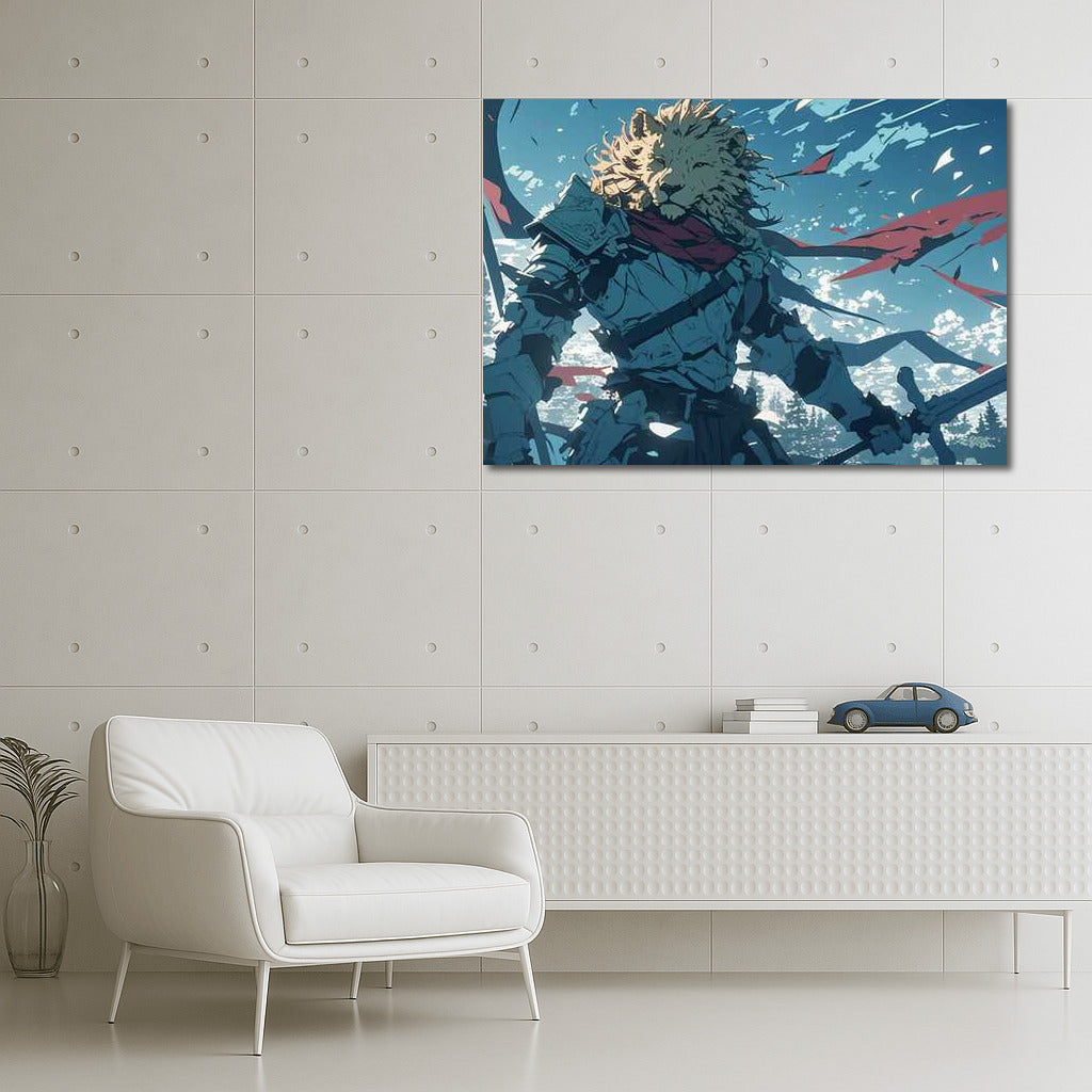 Epic Battle of the Lion Warrior: Fantasy World in Action Wall Art