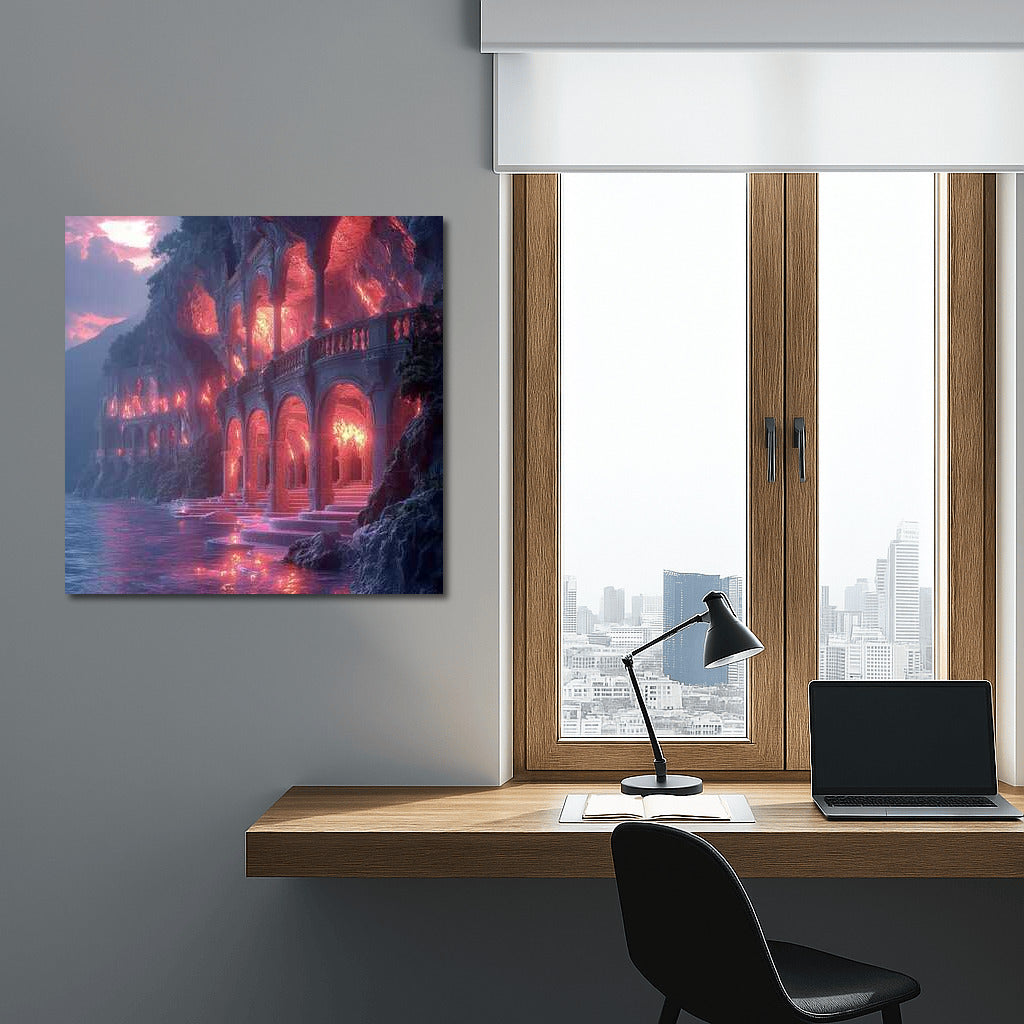 Dive into a world of dreams: an epic fantasy of a castle by a sparkling sea will bring your space to life. The perfect poster for dreamers. See more from the collection: Fantasy Art