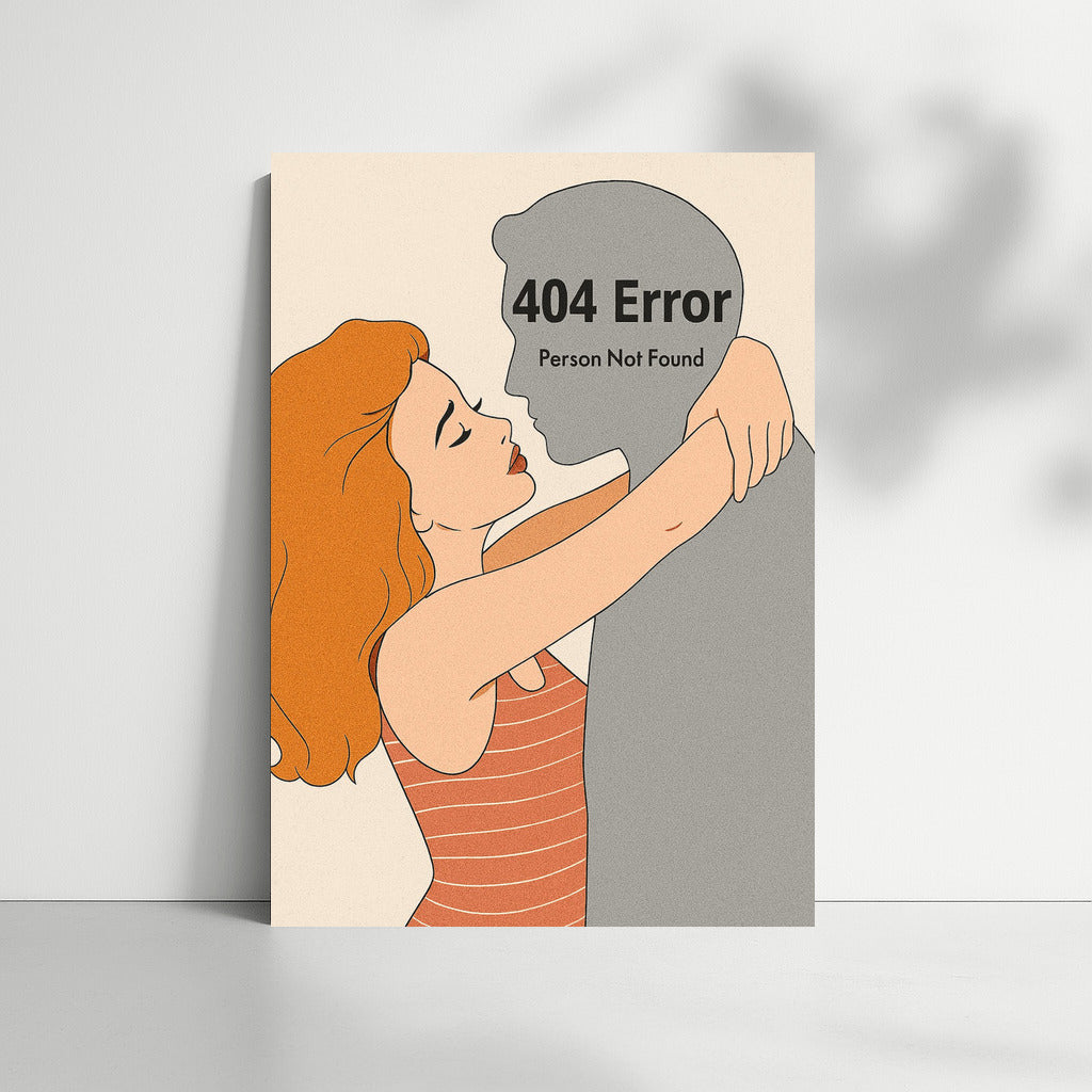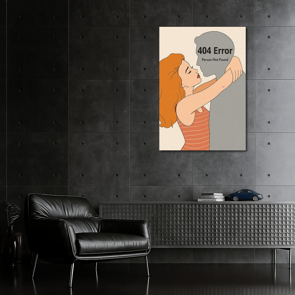 Error 404 in love: a humorous poster about unfulfilled expectations. Wall art for seekers of the ideal. See more from the collection: Humor Art