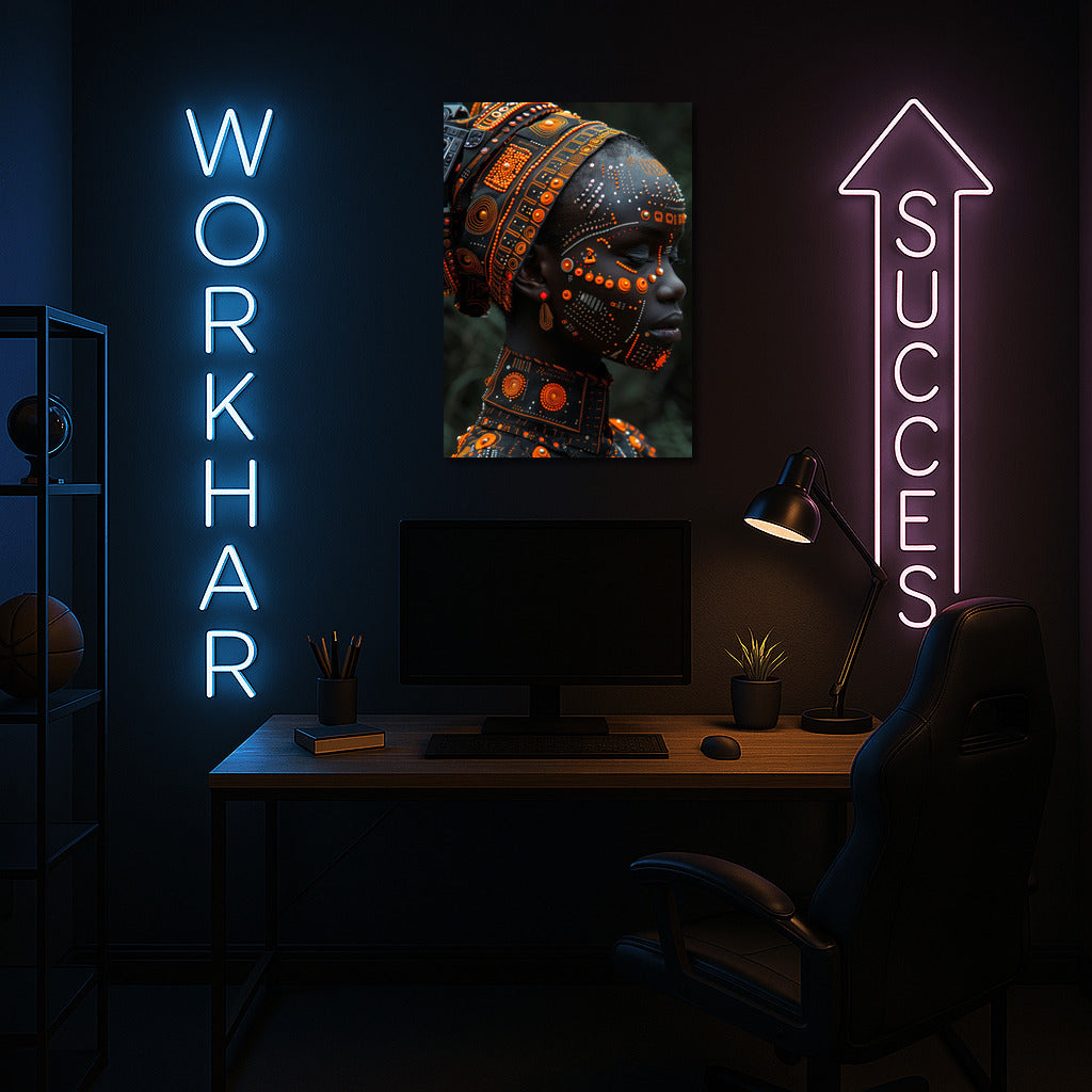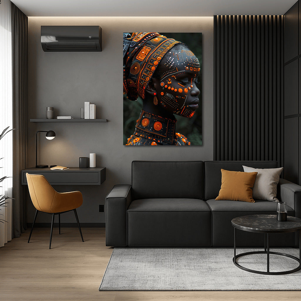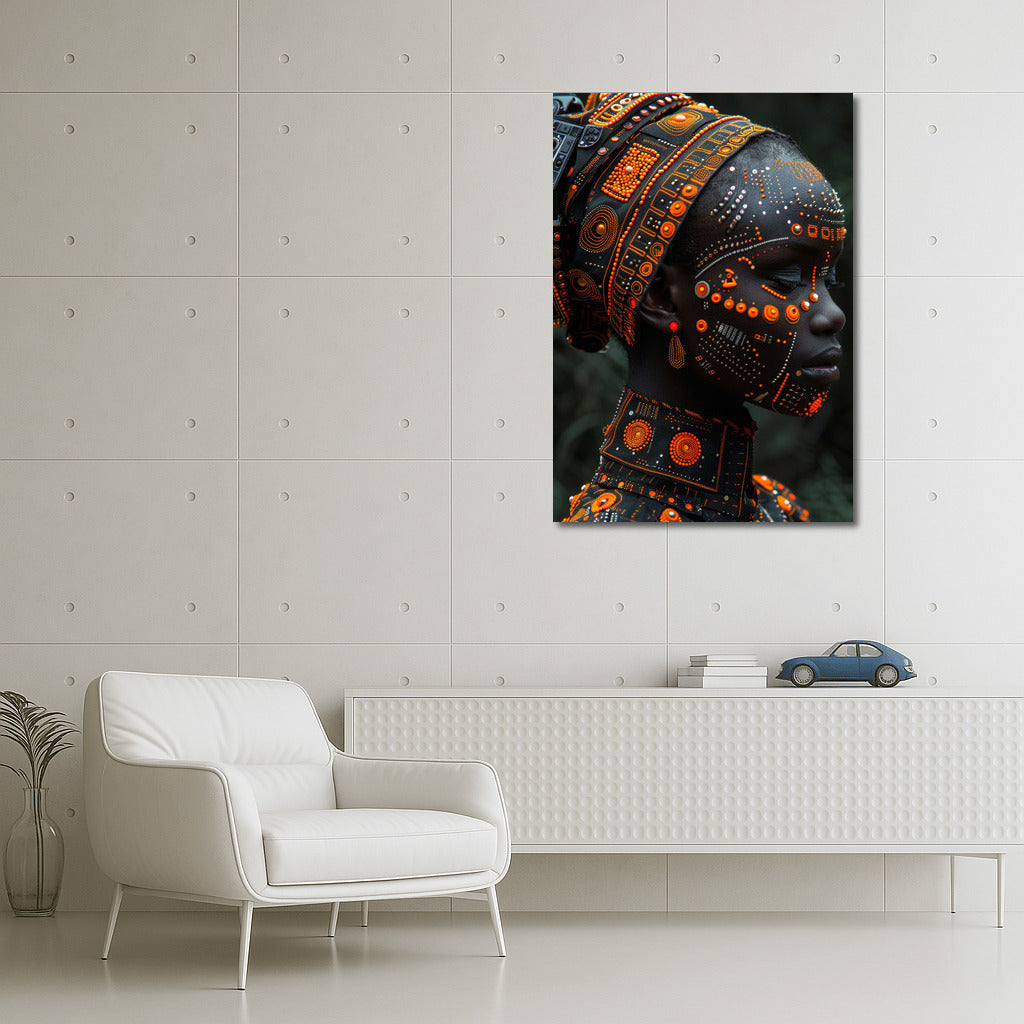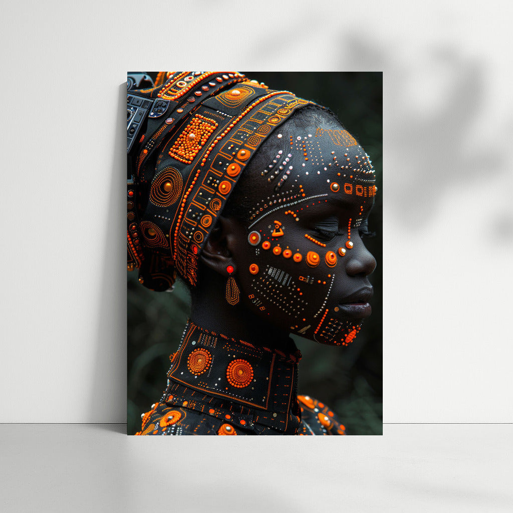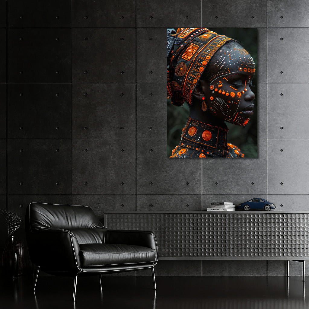 Dive into the world of color with this vibrant painting of a dark-skinned girl in ethnic patterns. The perfect poster for a stylish interior! See more from the collection: Wall Art with Women