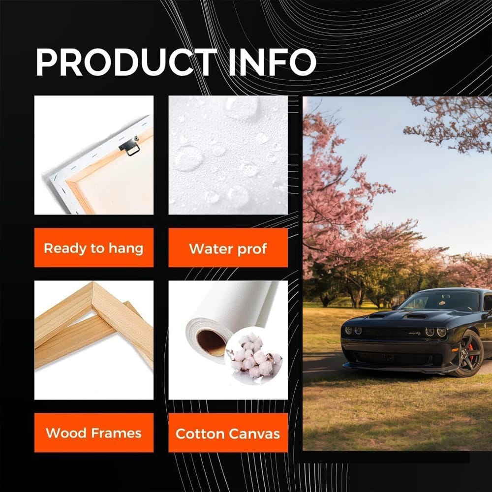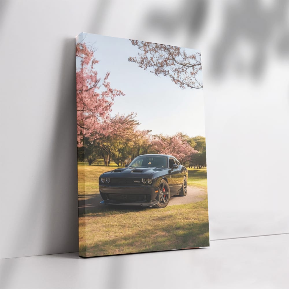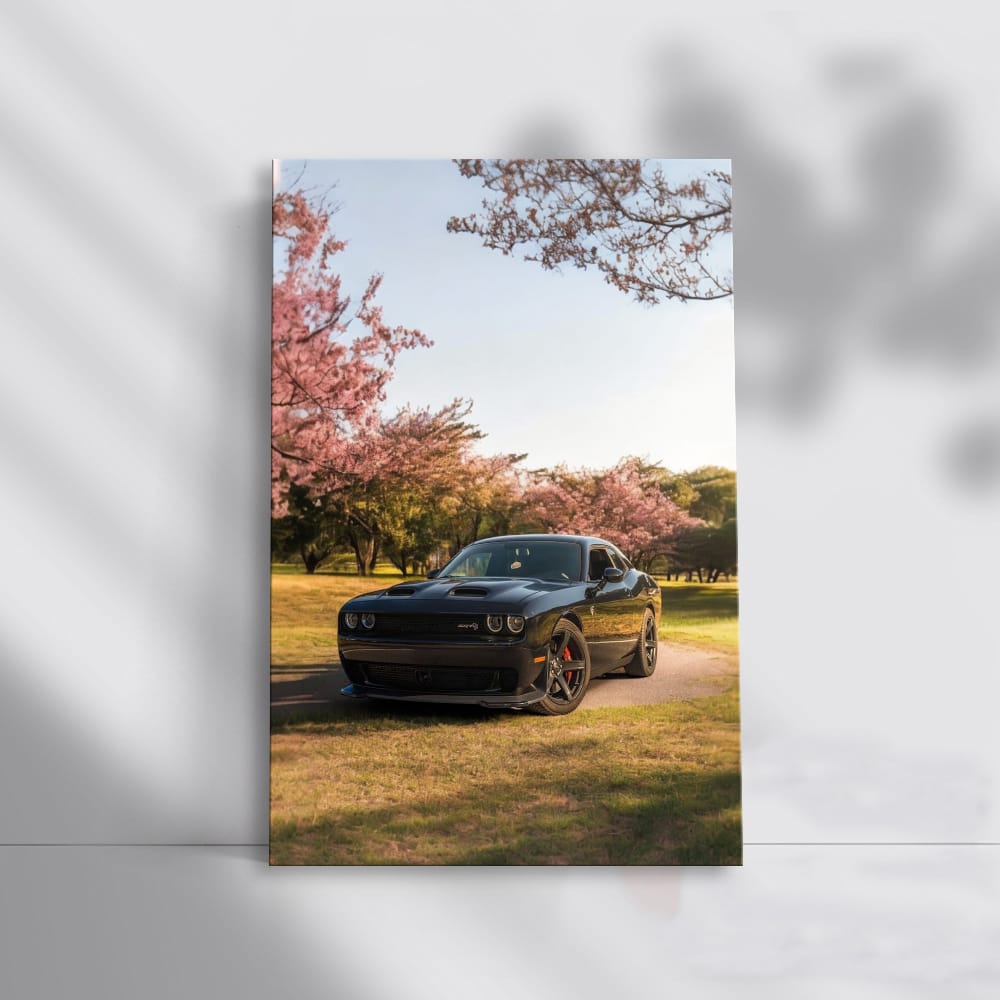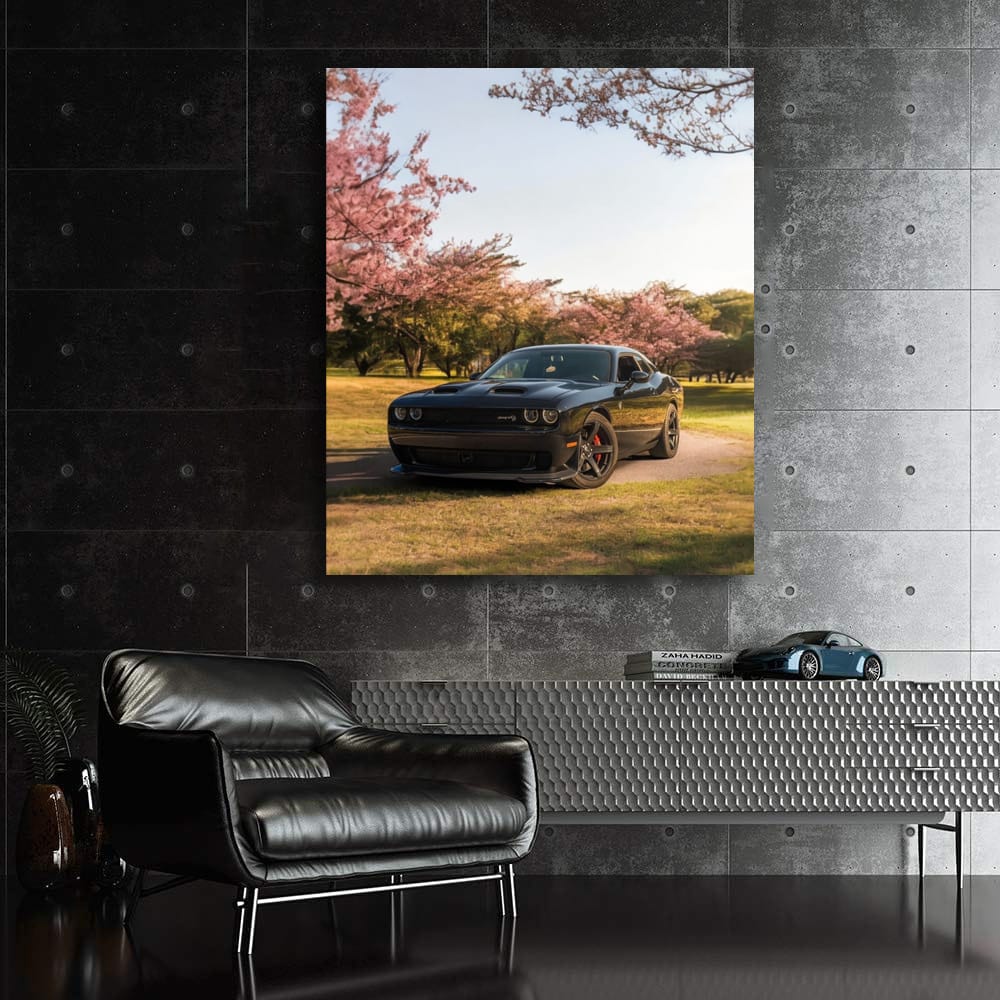 What a poster, bro! Dodge sits in the garden like a king on a throne. Wall art for true speed lovers. This beast in a blooming paradise is power and beauty in one bottle. A painting that charges adrenaline and brings drive to any garage. See more from the collection: Dodge Art